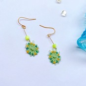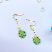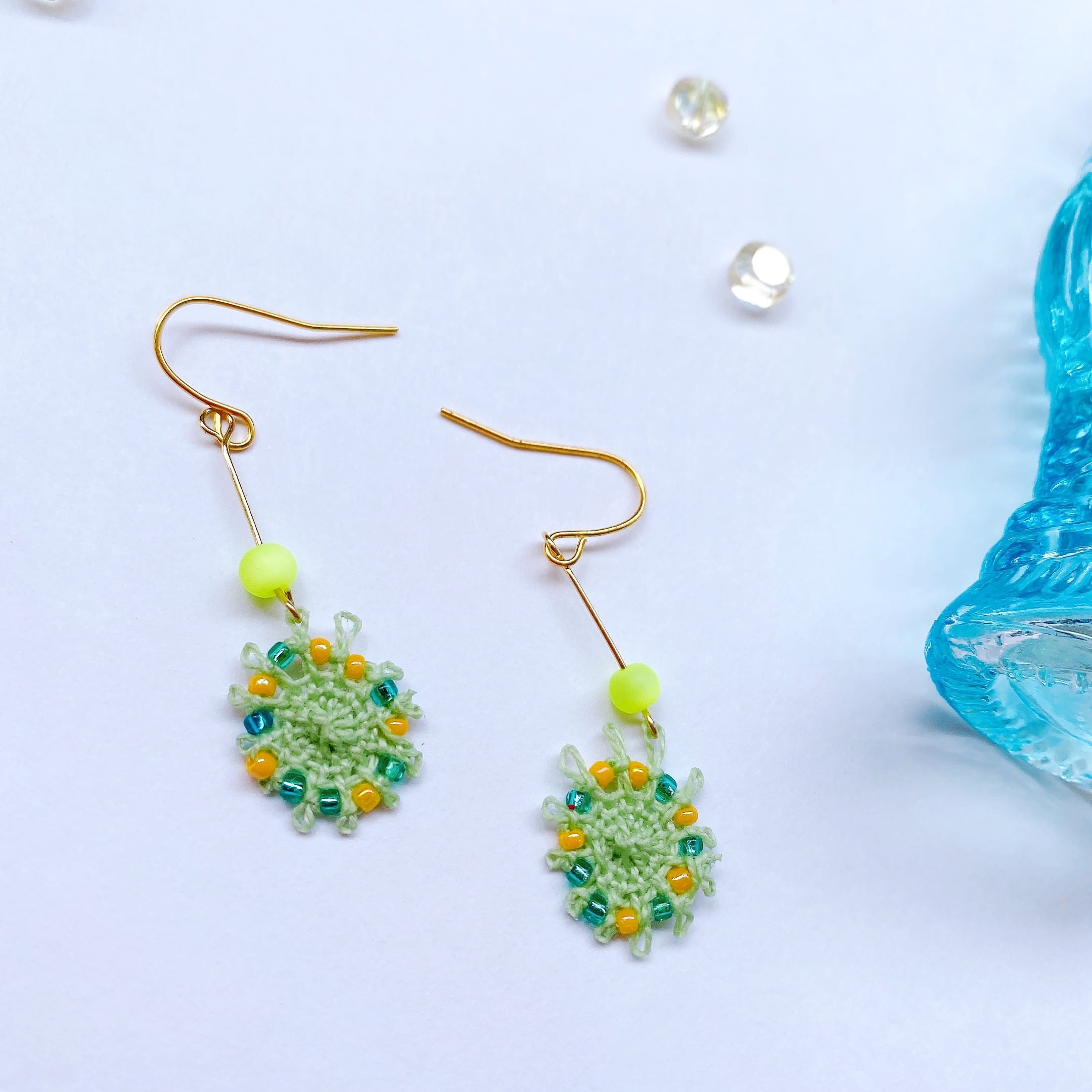 鮮やかなグリーンの糸にとても小さいガラスのアクセントビーズを入れました。