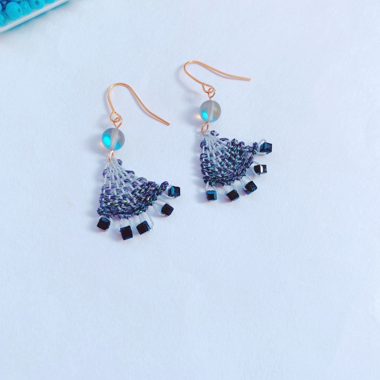 [材料] ラメ入り糸・ガラスビーズ・ピアス金具