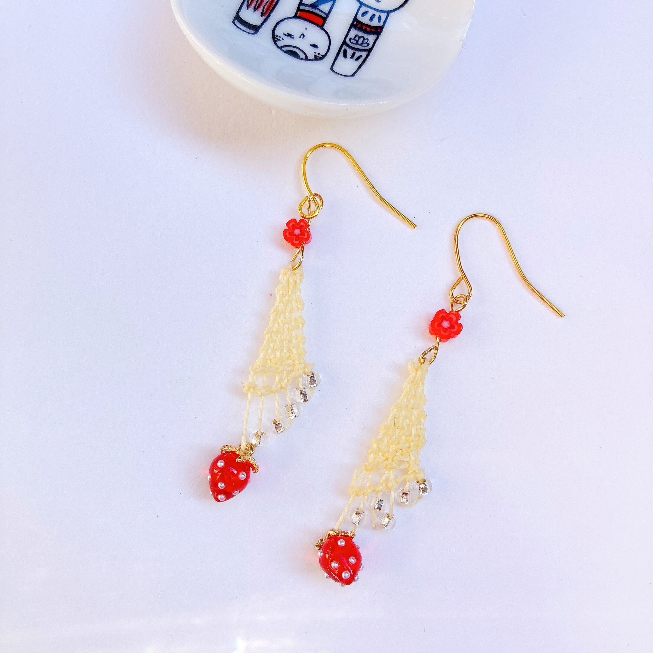 小さないちごのニャンドウティピアス