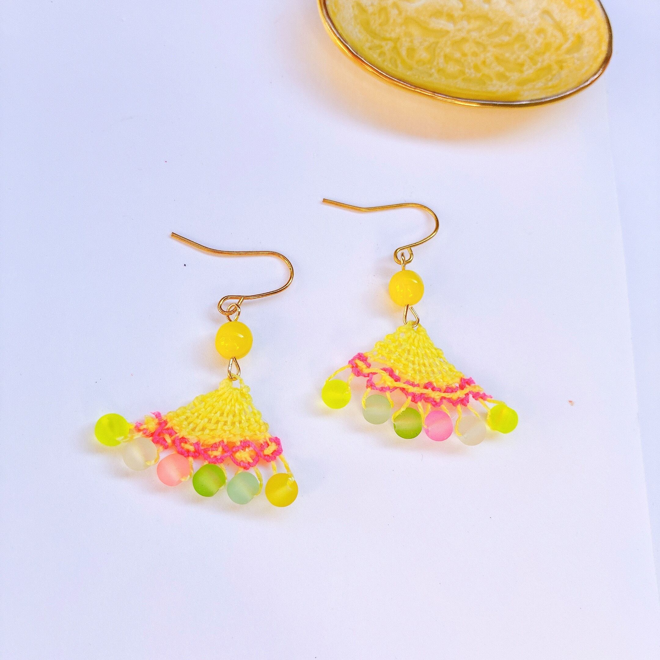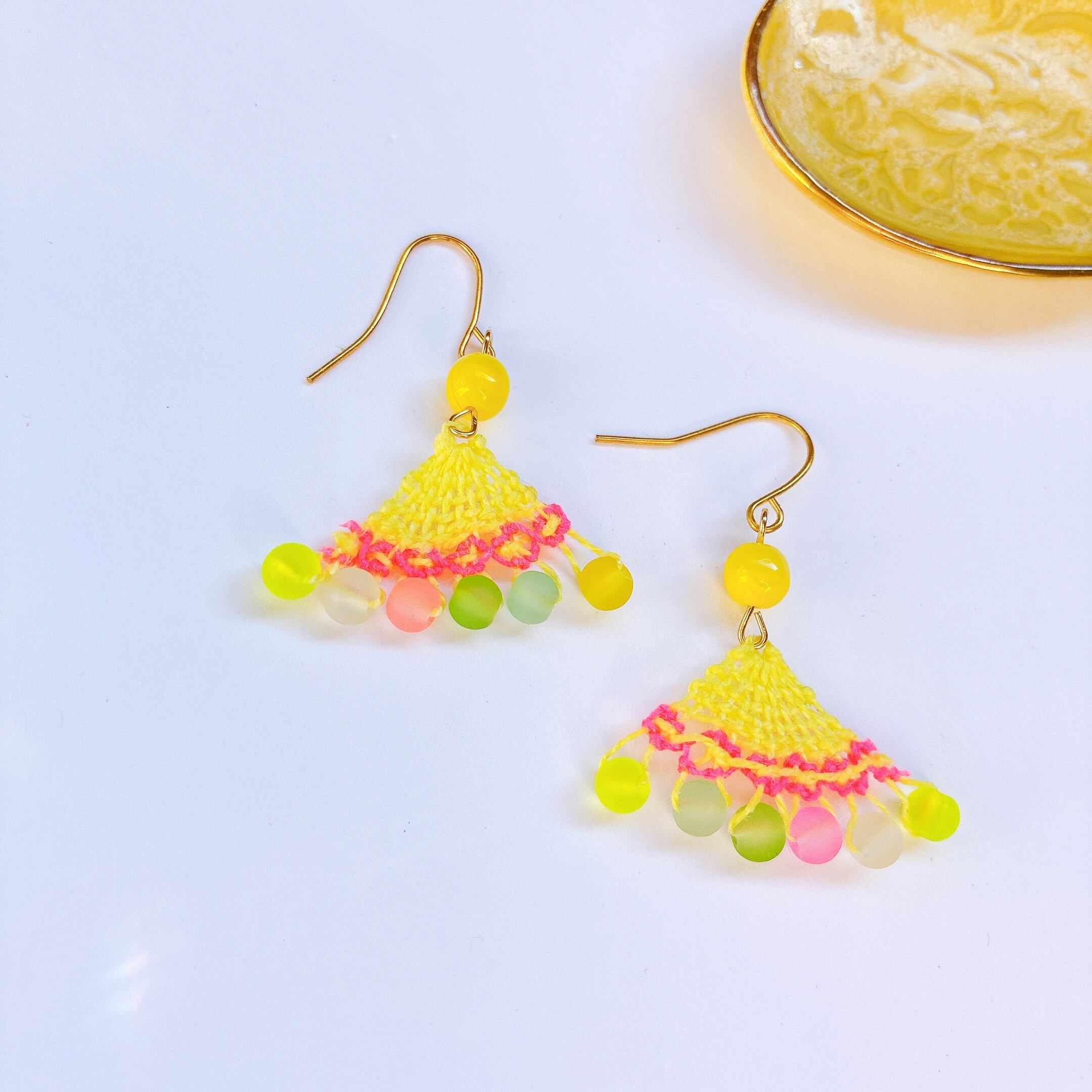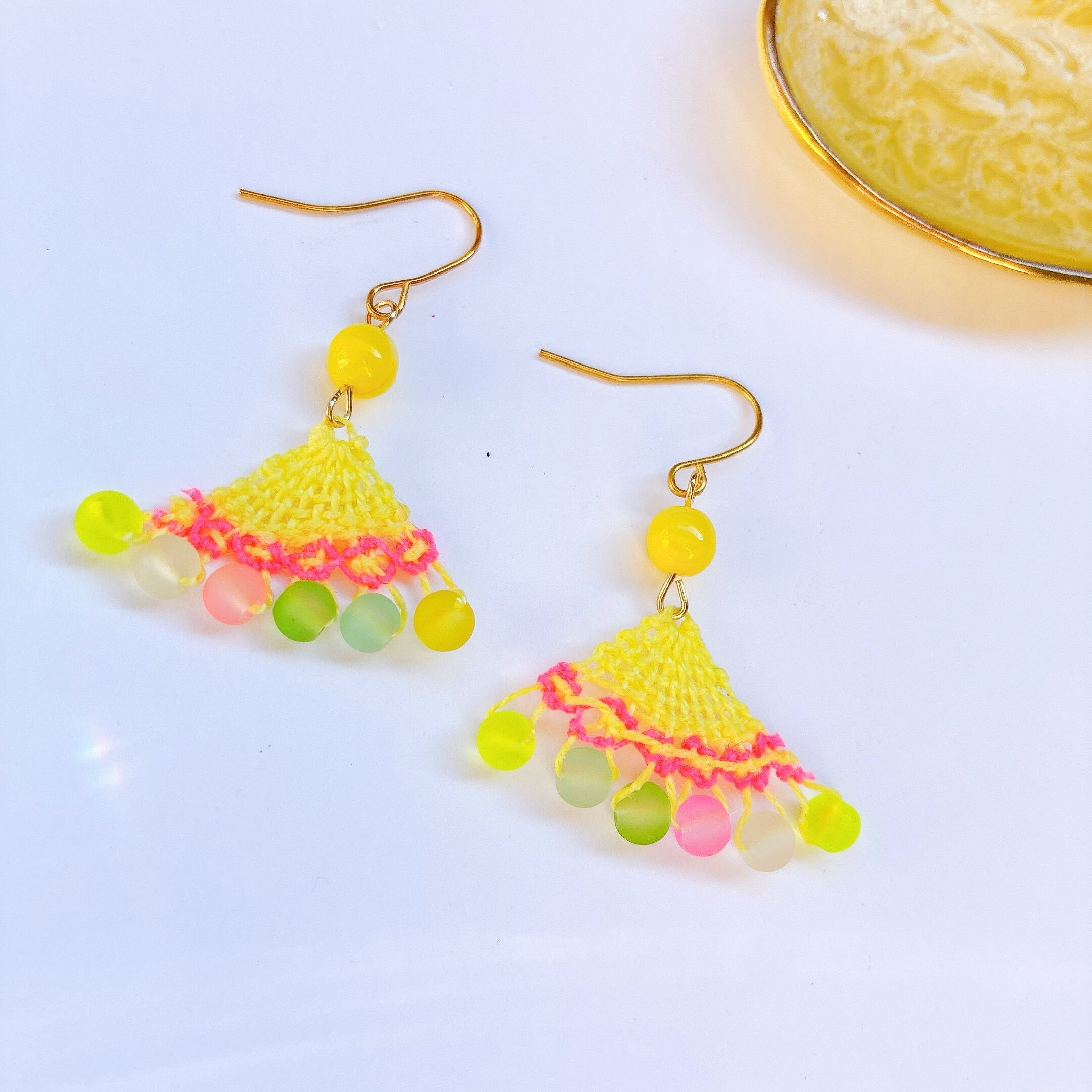 [材料] 黄色糸・ガラスビーズ・ピアス金具