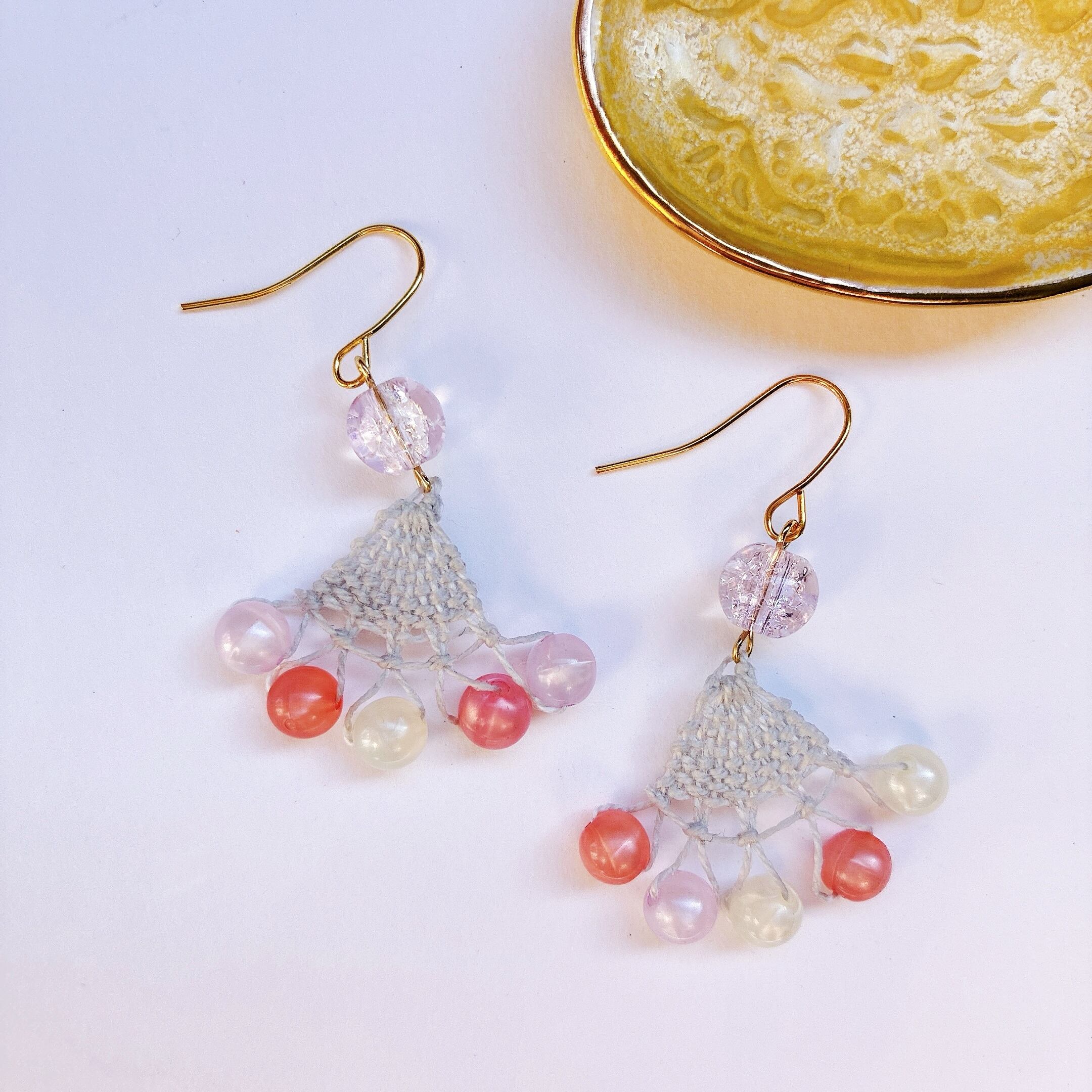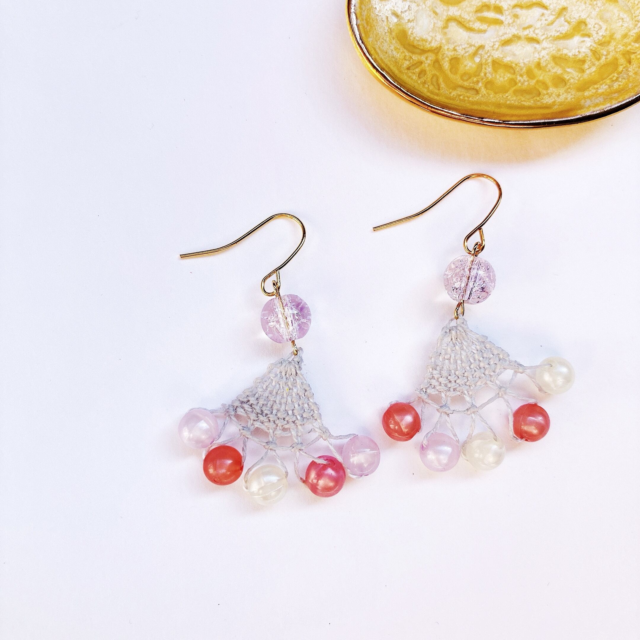 しゃぼん玉のような軽く淡い色のビーズと薄いグレーの糸を合わせました。