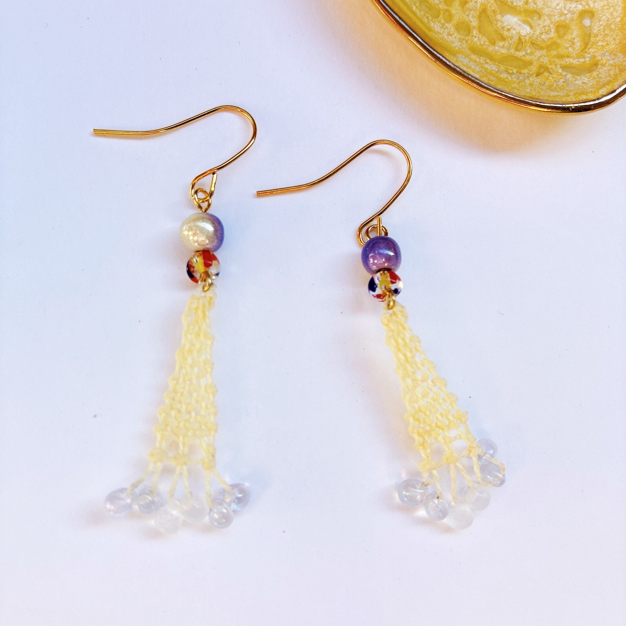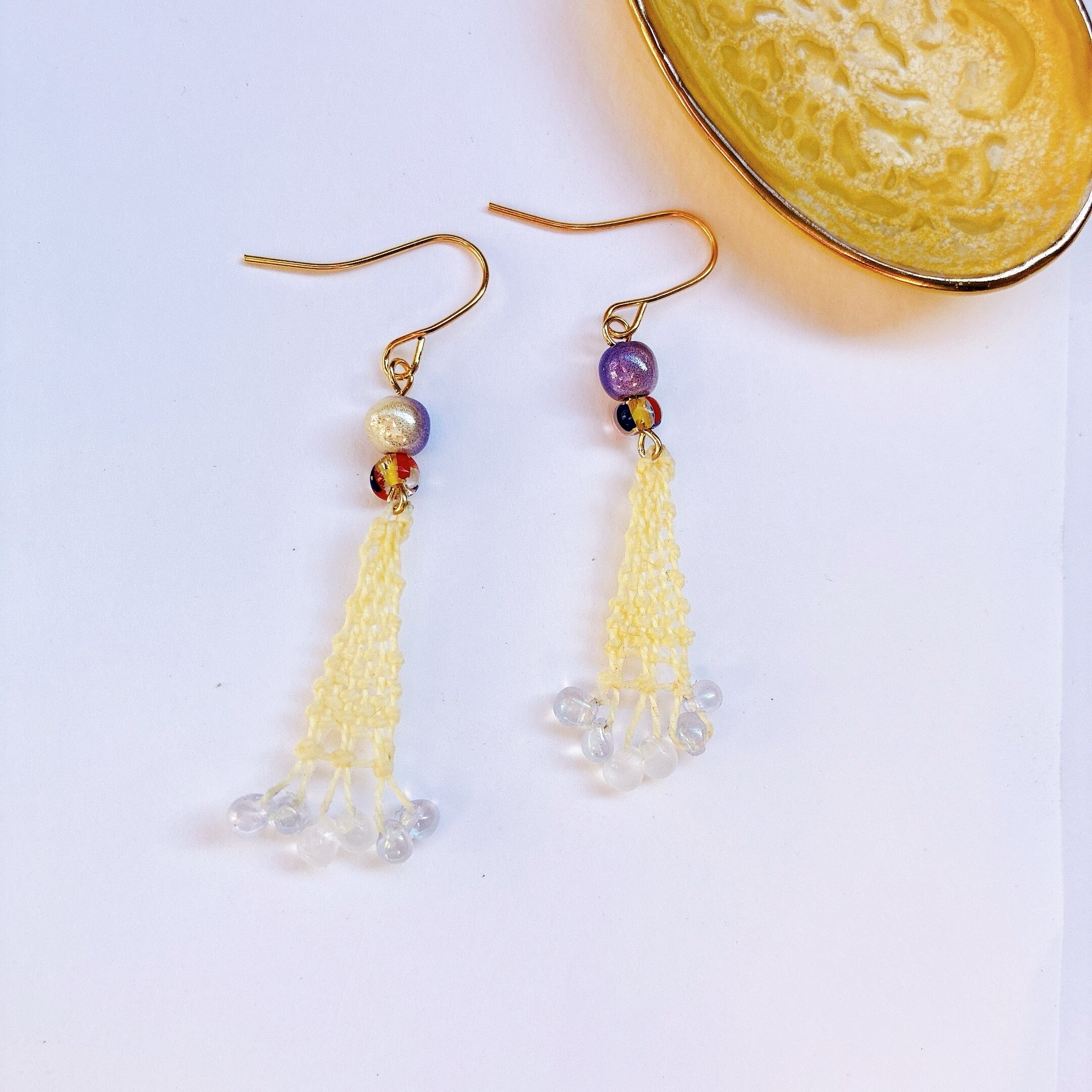 [材料] 薄いイエロー糸・ガラスビーズ・ピアス金具