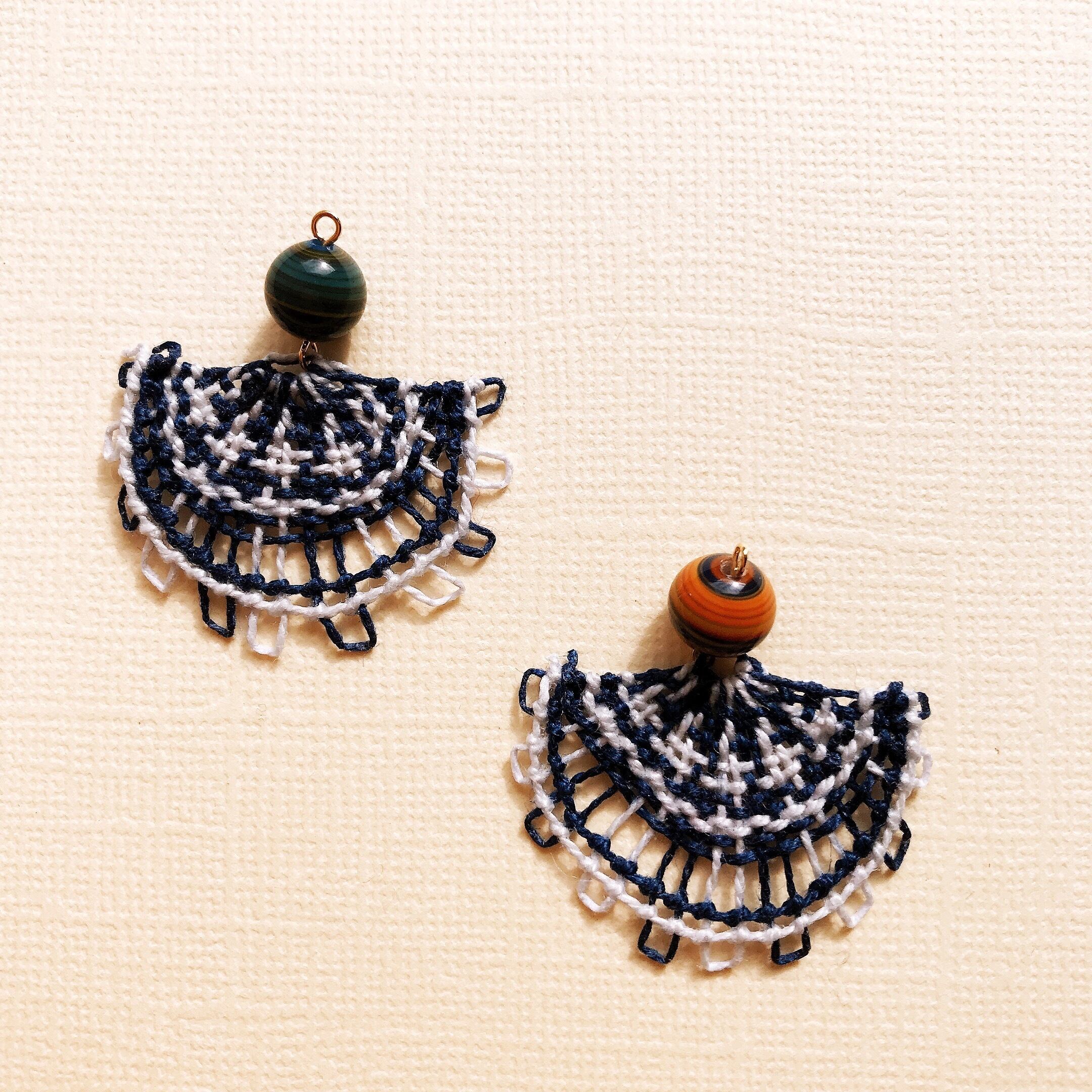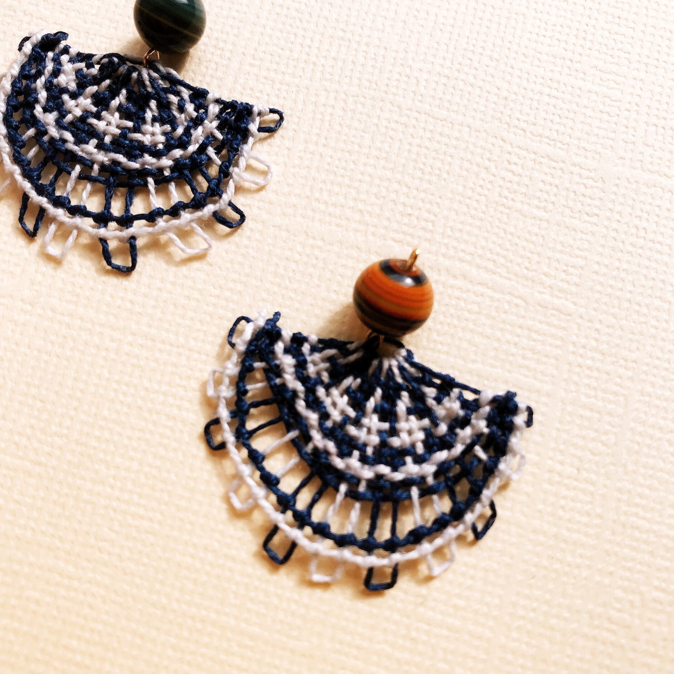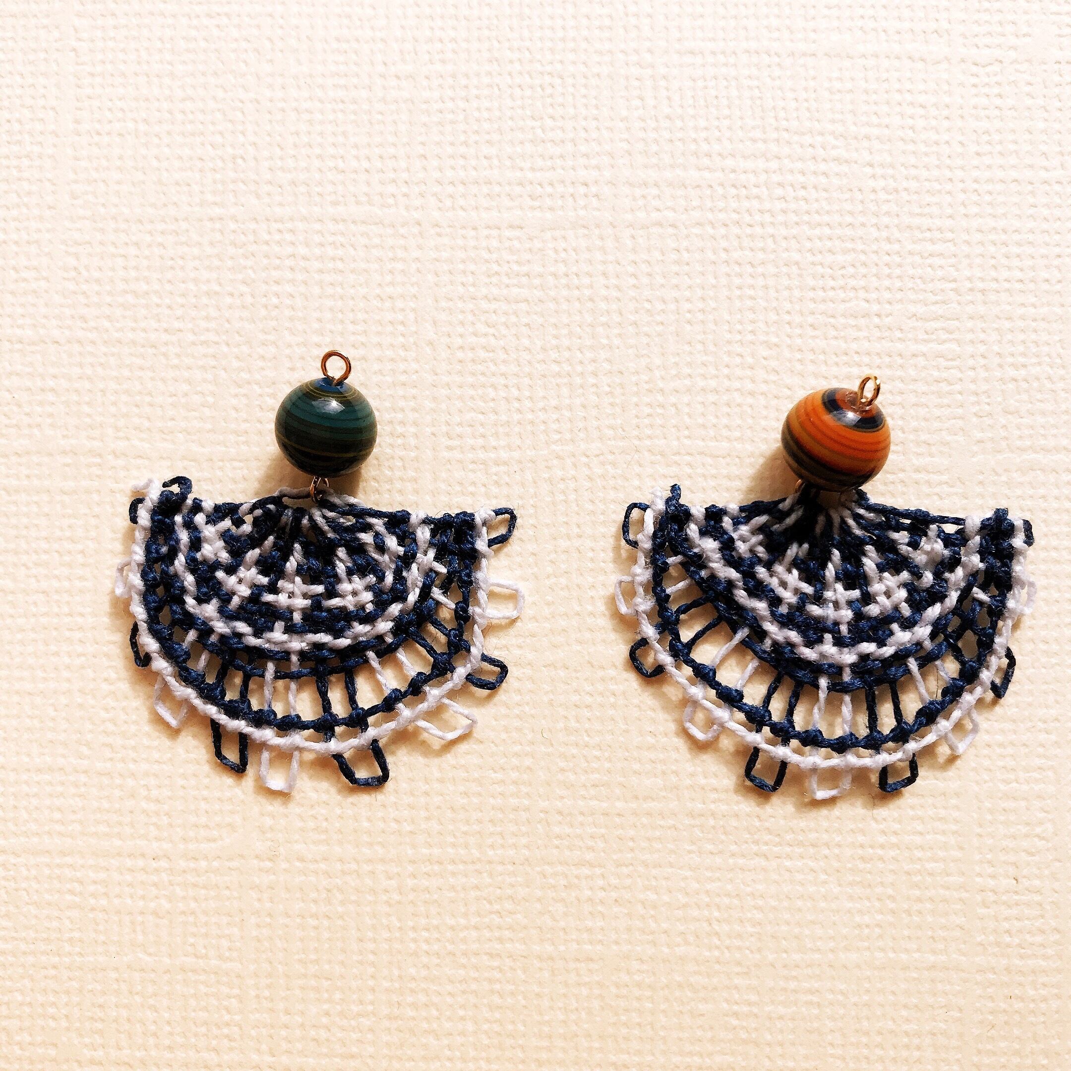 半円ニャンドゥティとアフリカガラスビーズが1つついています。