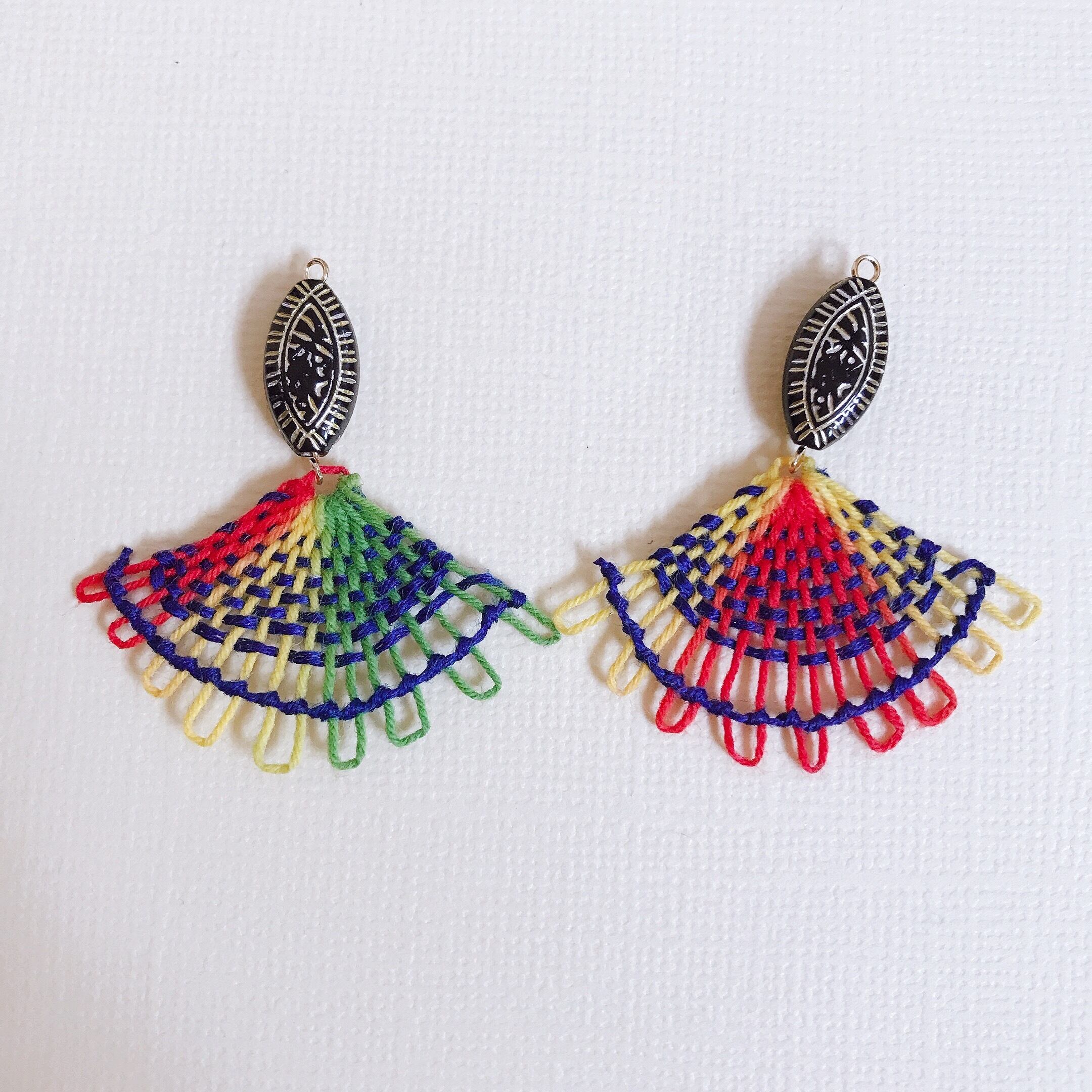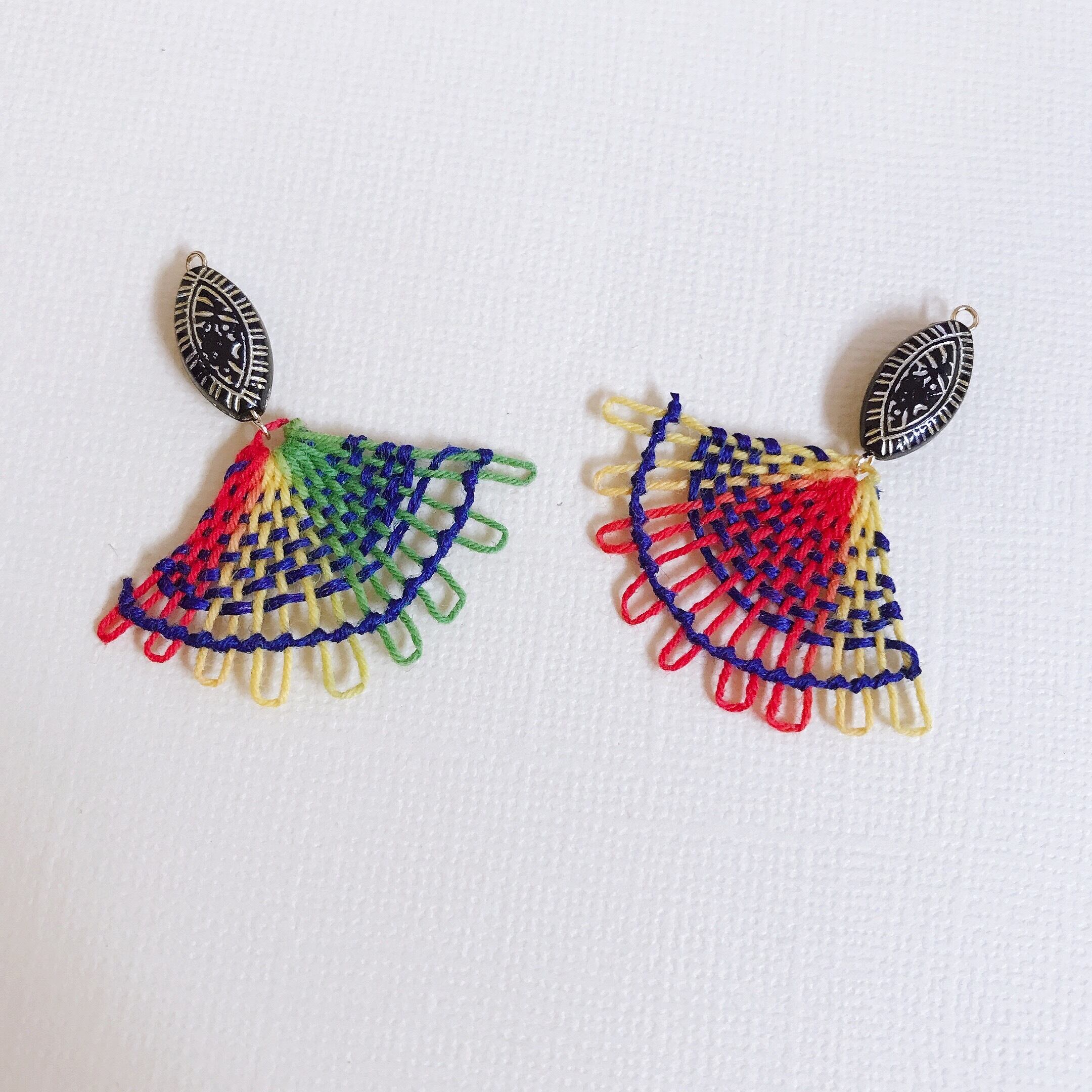 材料 レース糸、刺繍糸、ガラスビーズ、丸カン