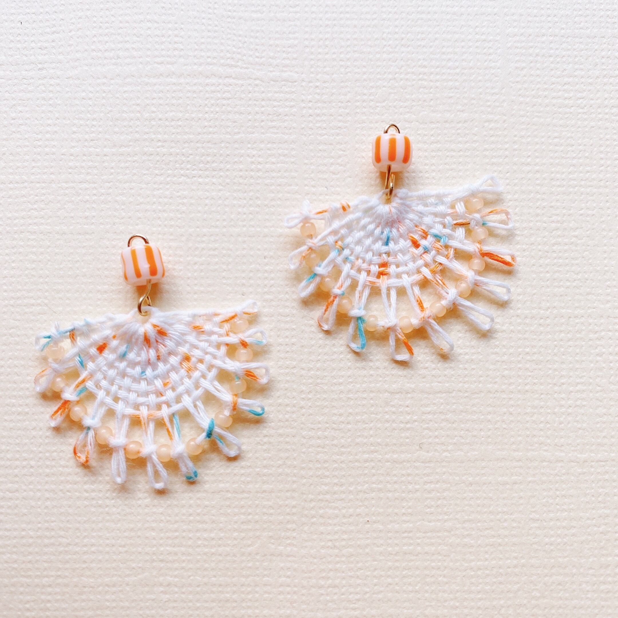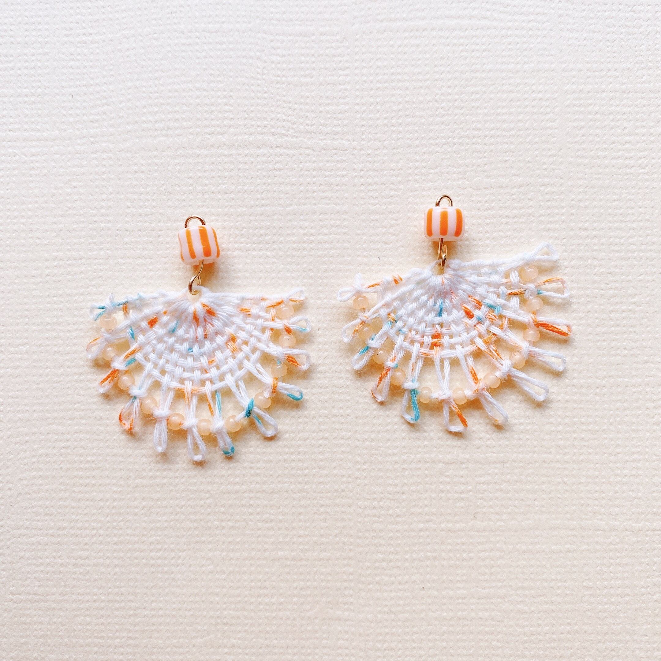 オレンジの実付きニャンドゥティのピアス