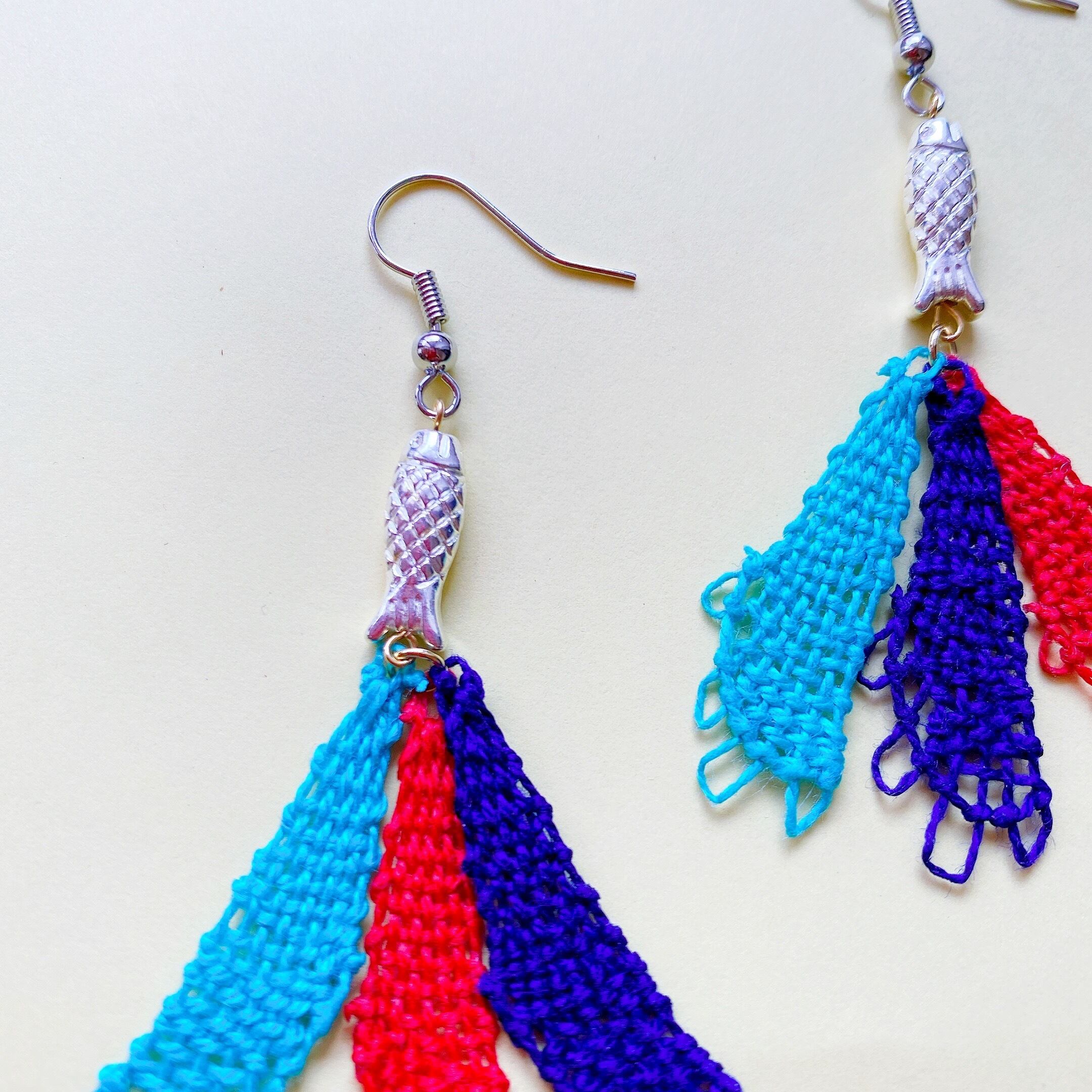 お魚金具に3色のニャンドゥティモチーフをつけました。
