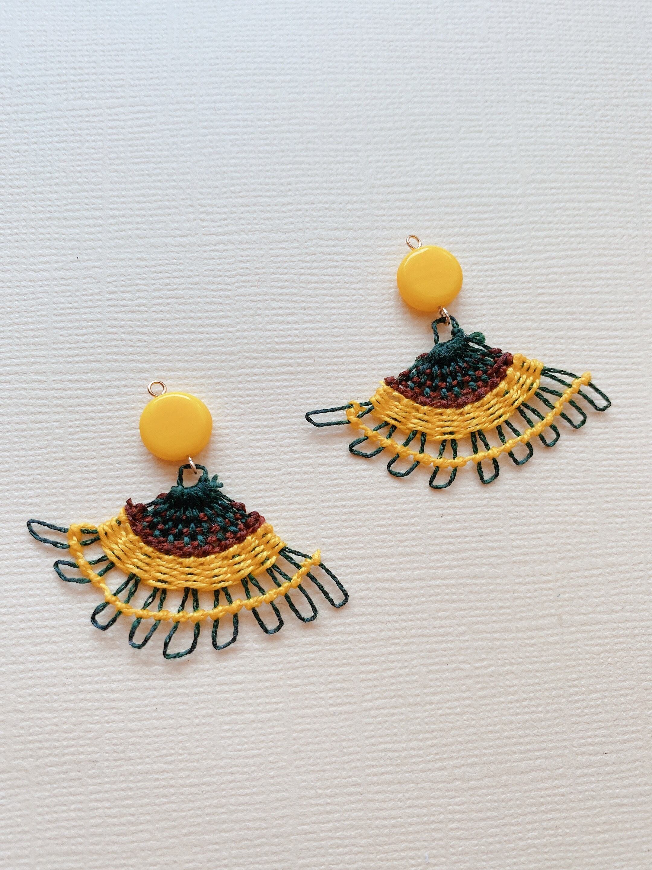 ひまわりニャンドゥティのイヤリング(グリーン)
