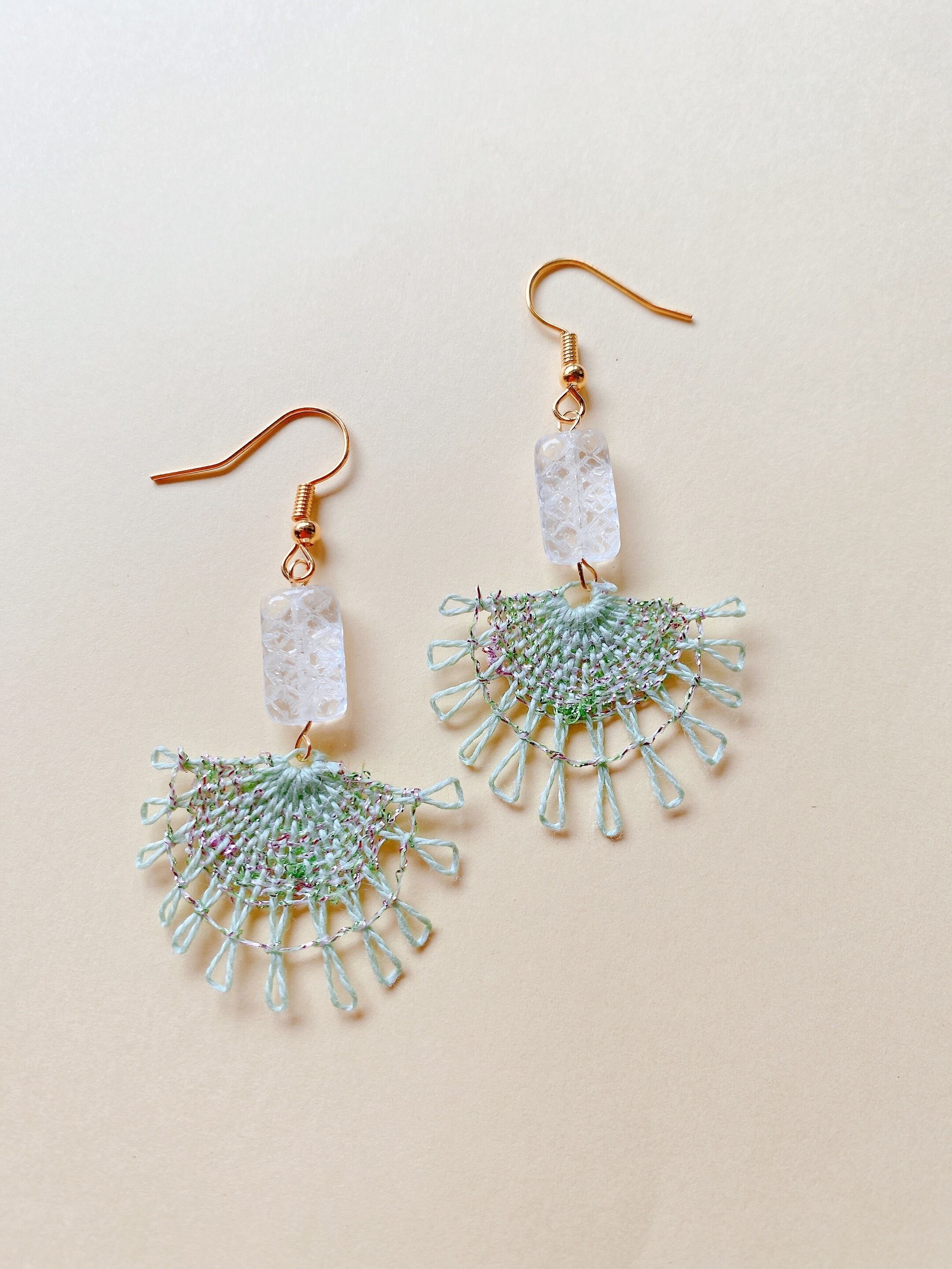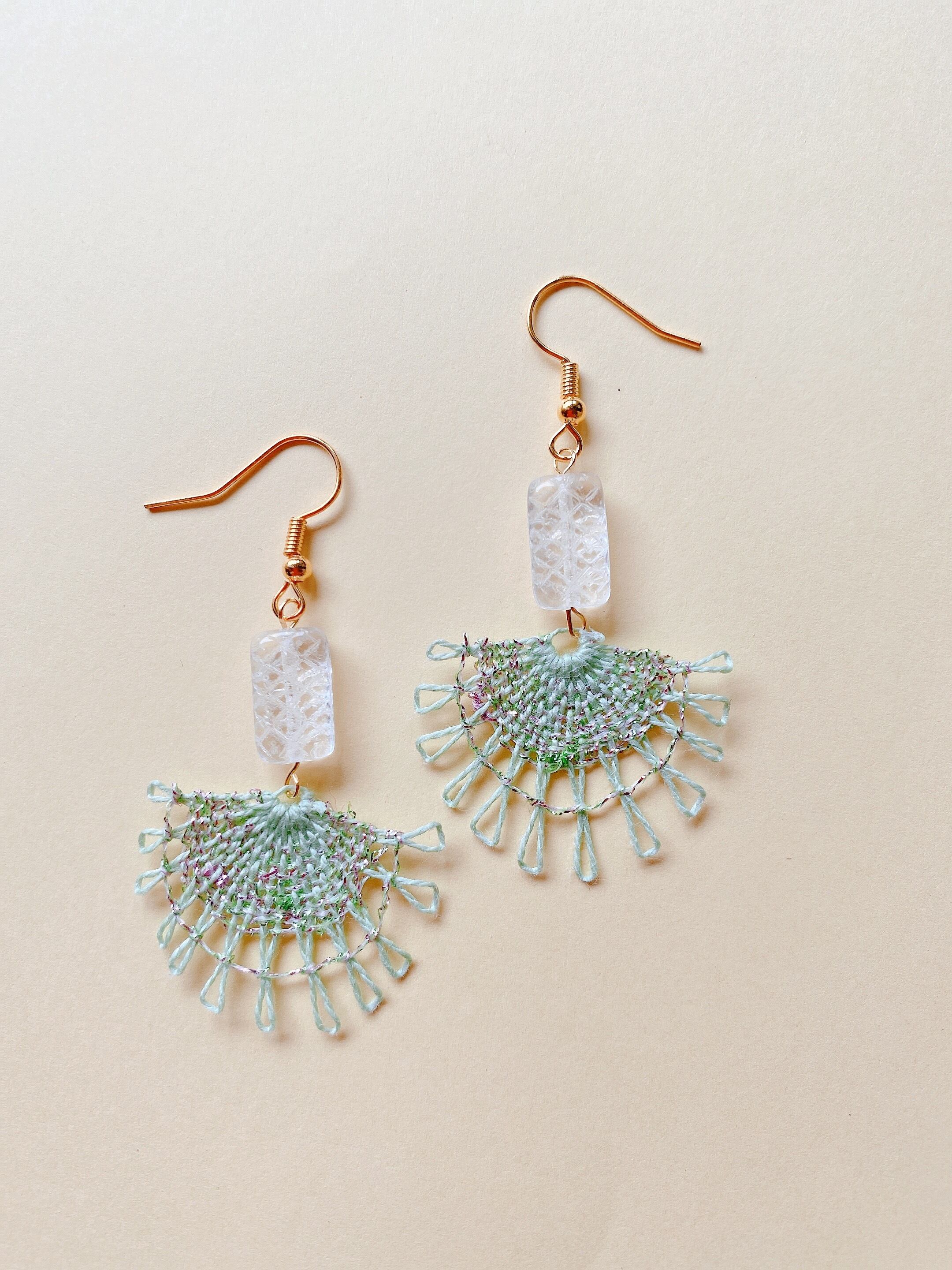 [材料] 刺繍糸・ラメ糸・アンティークガラスビーズ・イヤリング金具