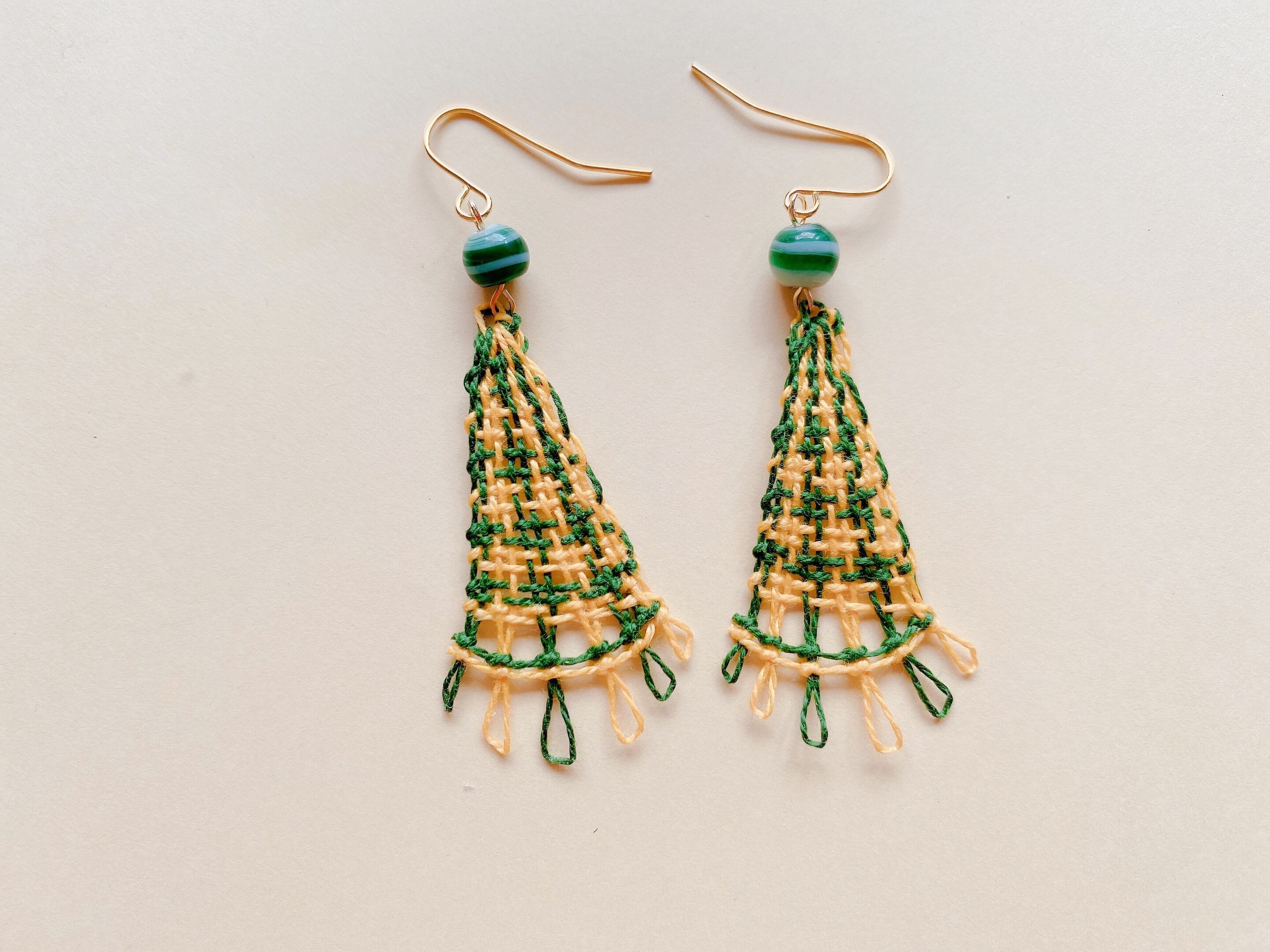 スマートチェック柄イエロー×グリーンニャンドゥティのピアス