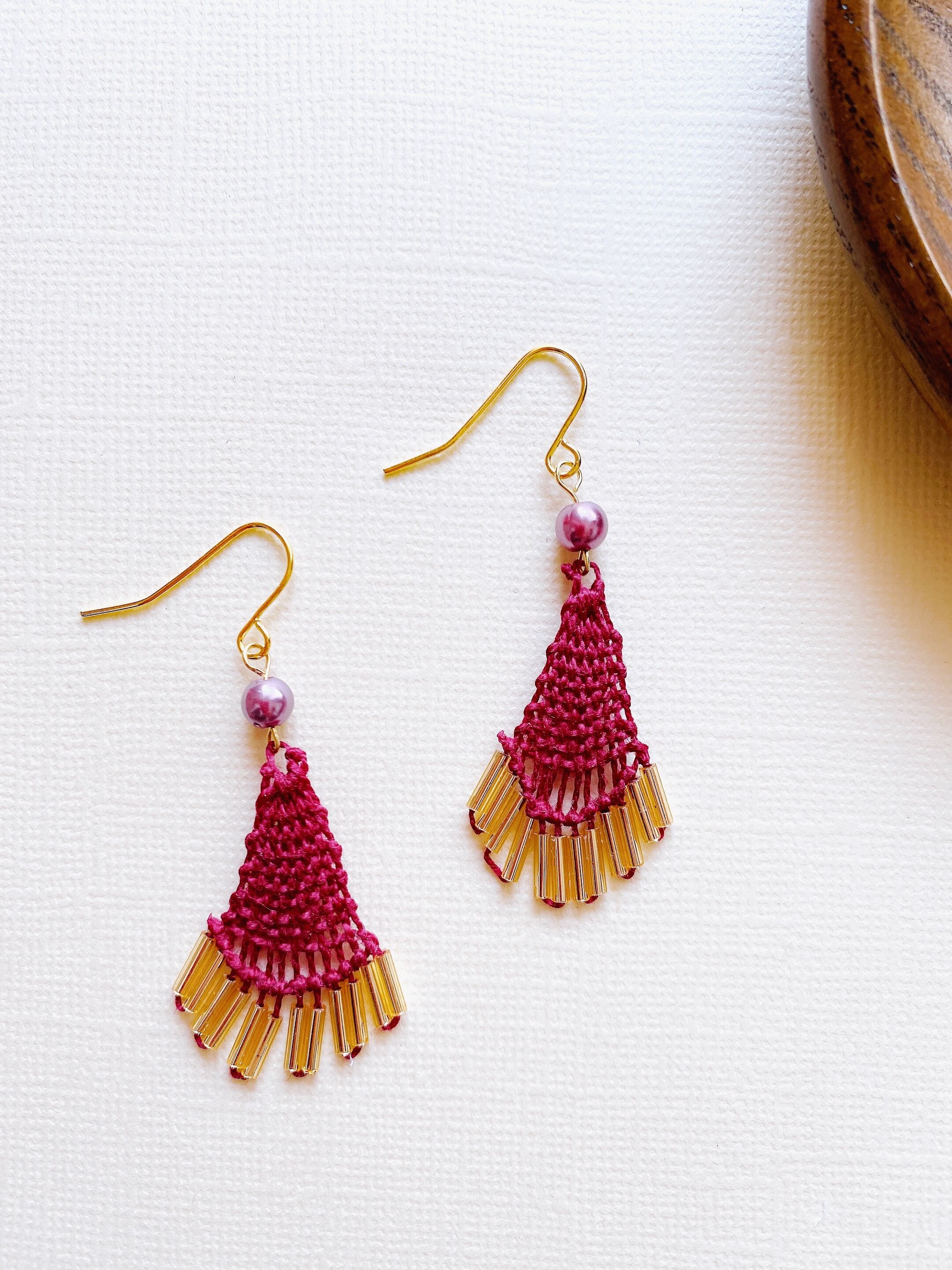 ぶどう色ニャンドゥティのピアス