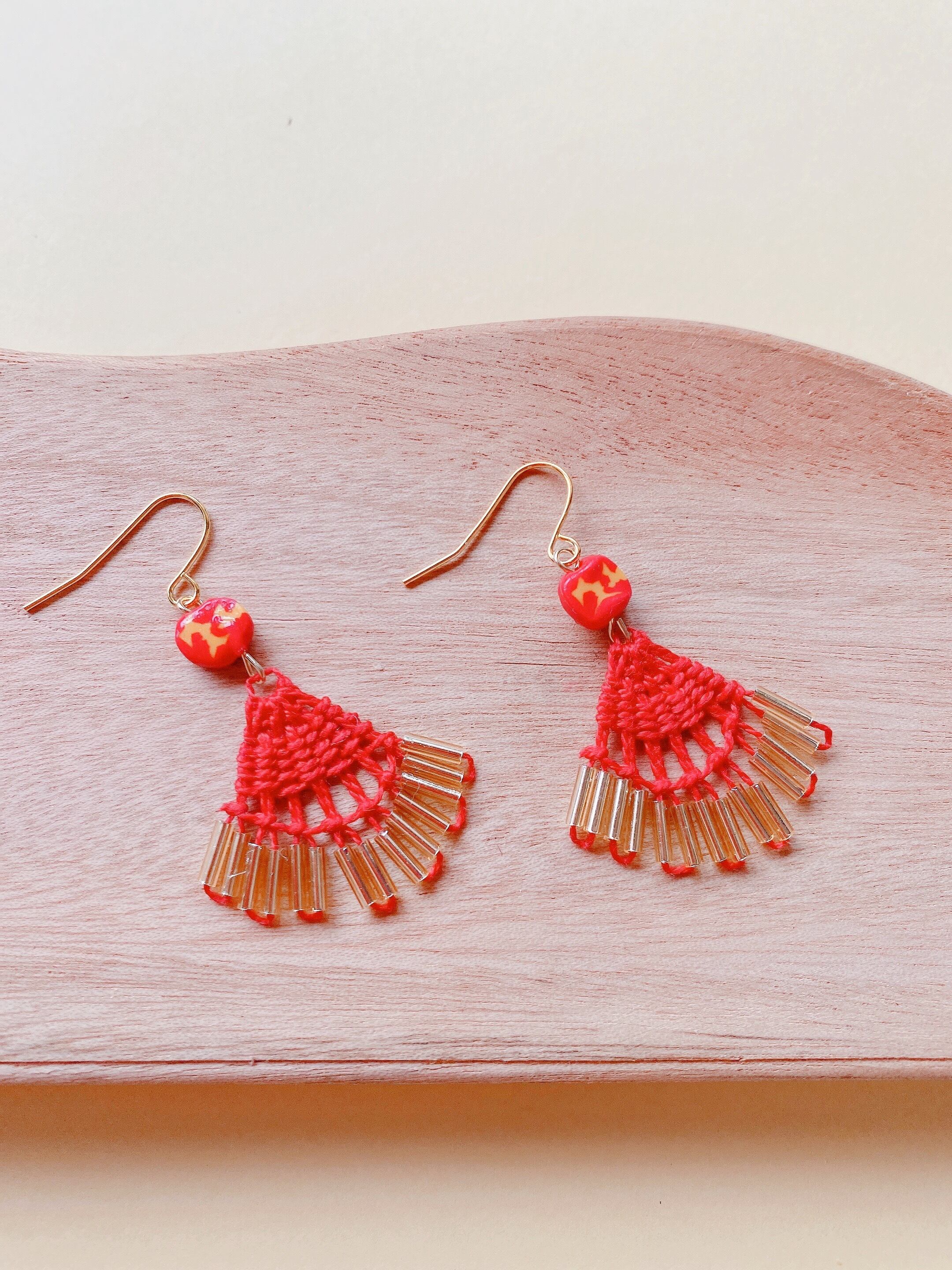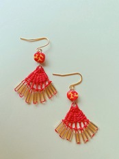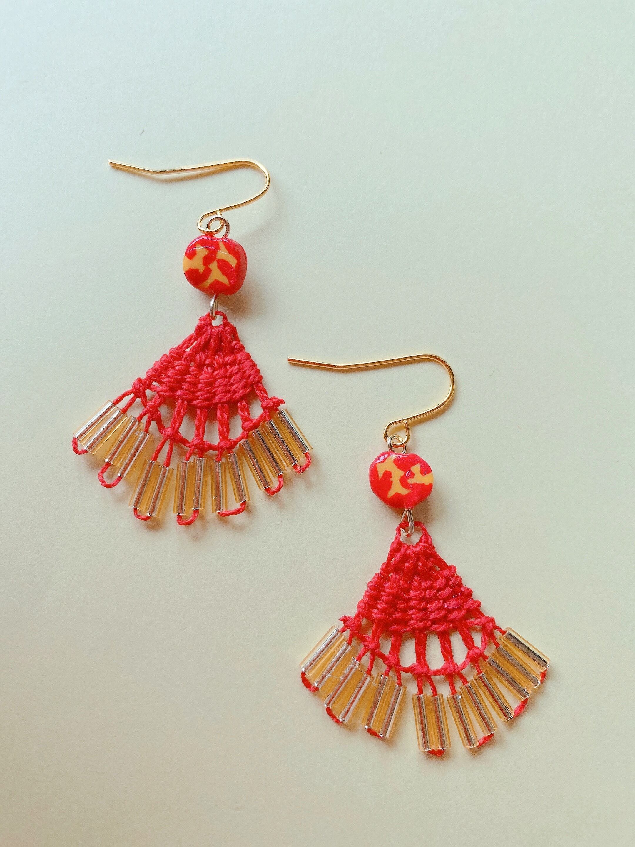 小さな赤いニャンドゥティのピアス