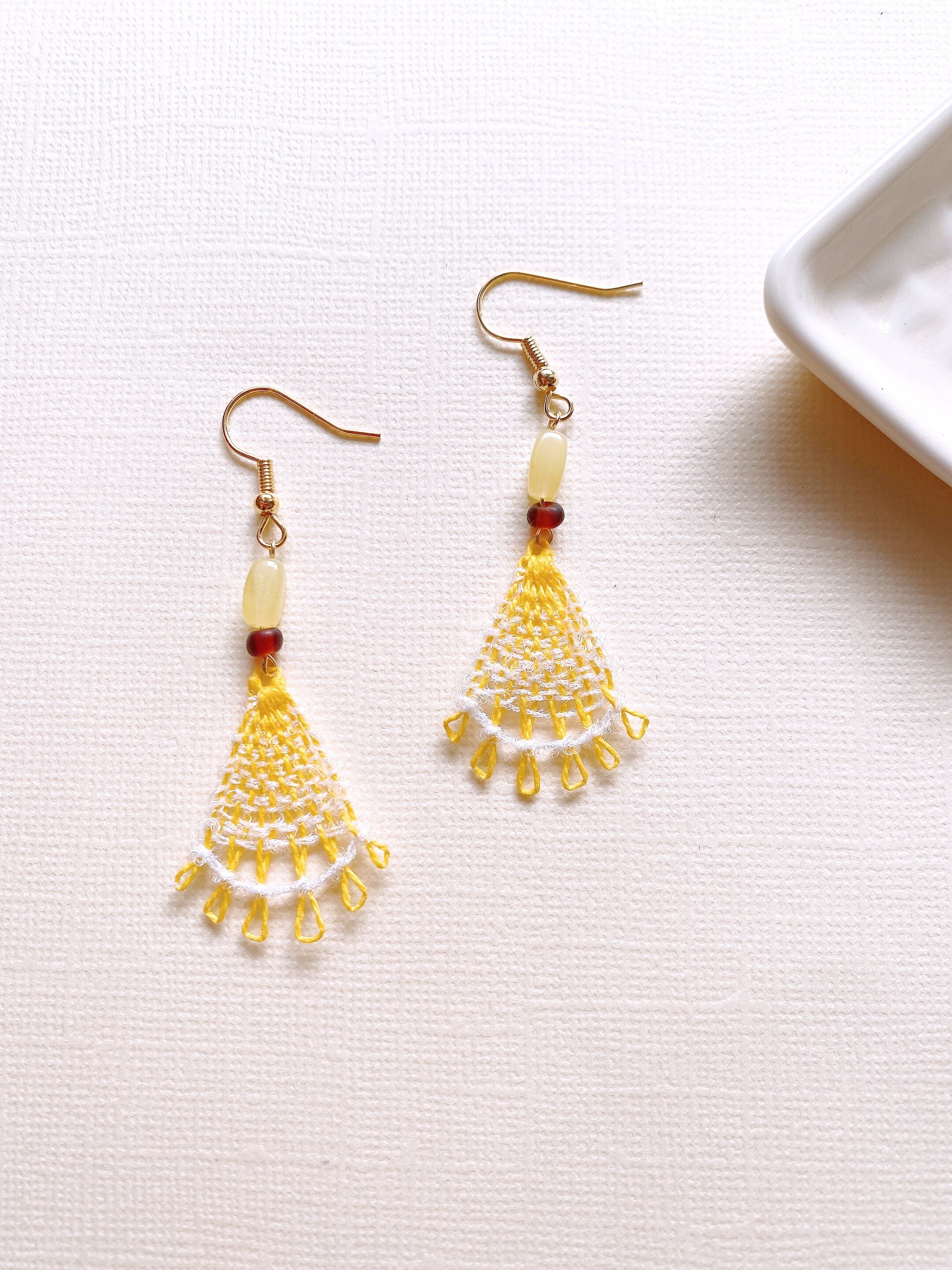 [材料] 刺繍糸・光る白変り糸・トルコビーズ・ピアス金具