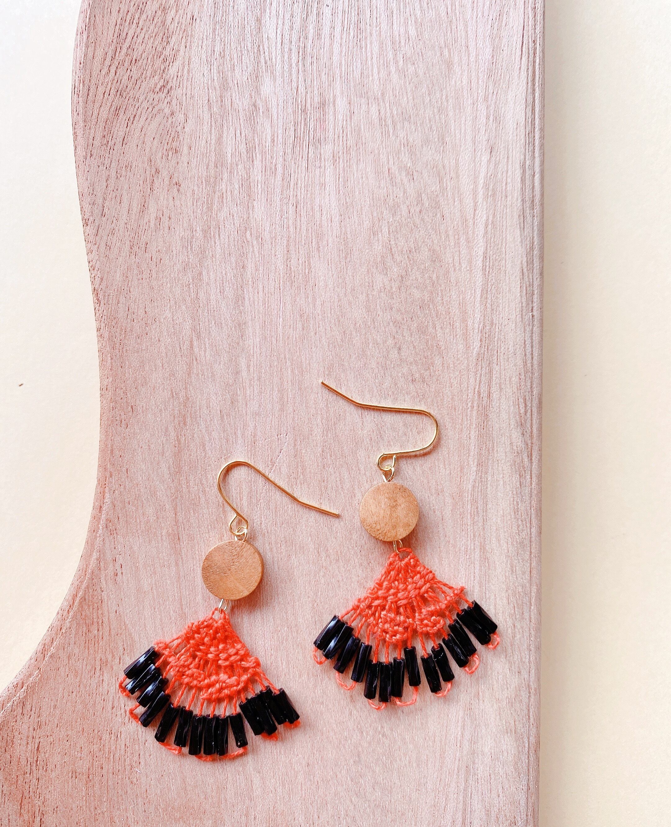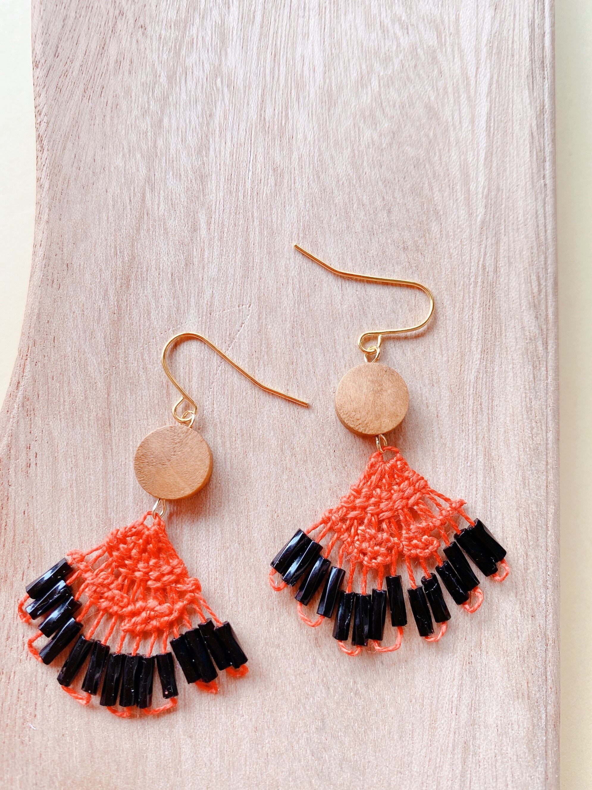 オレンジのニャンドゥティのピアス