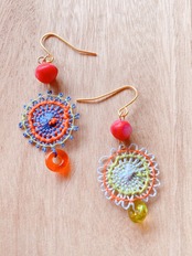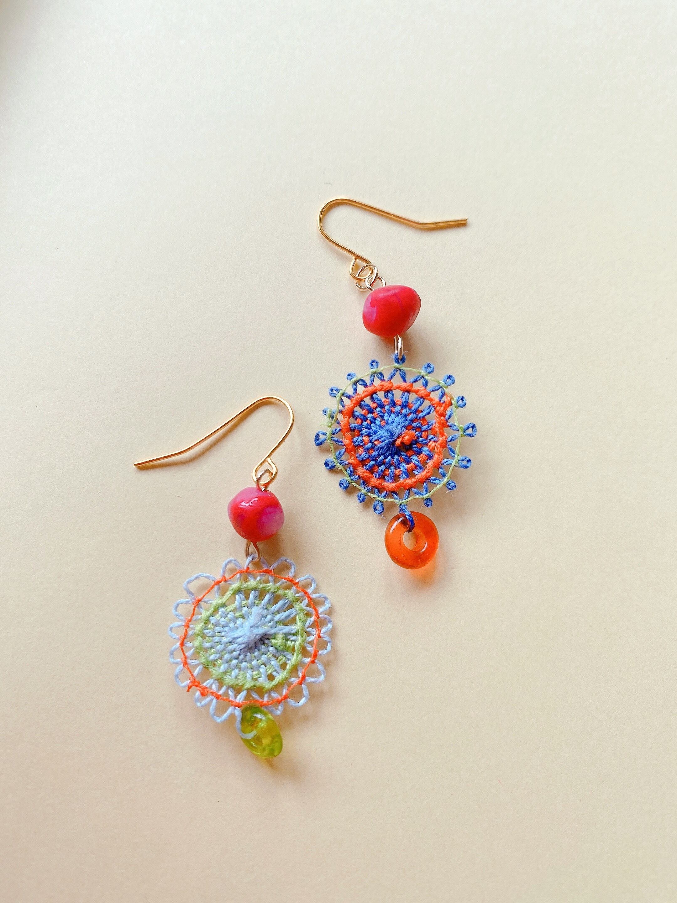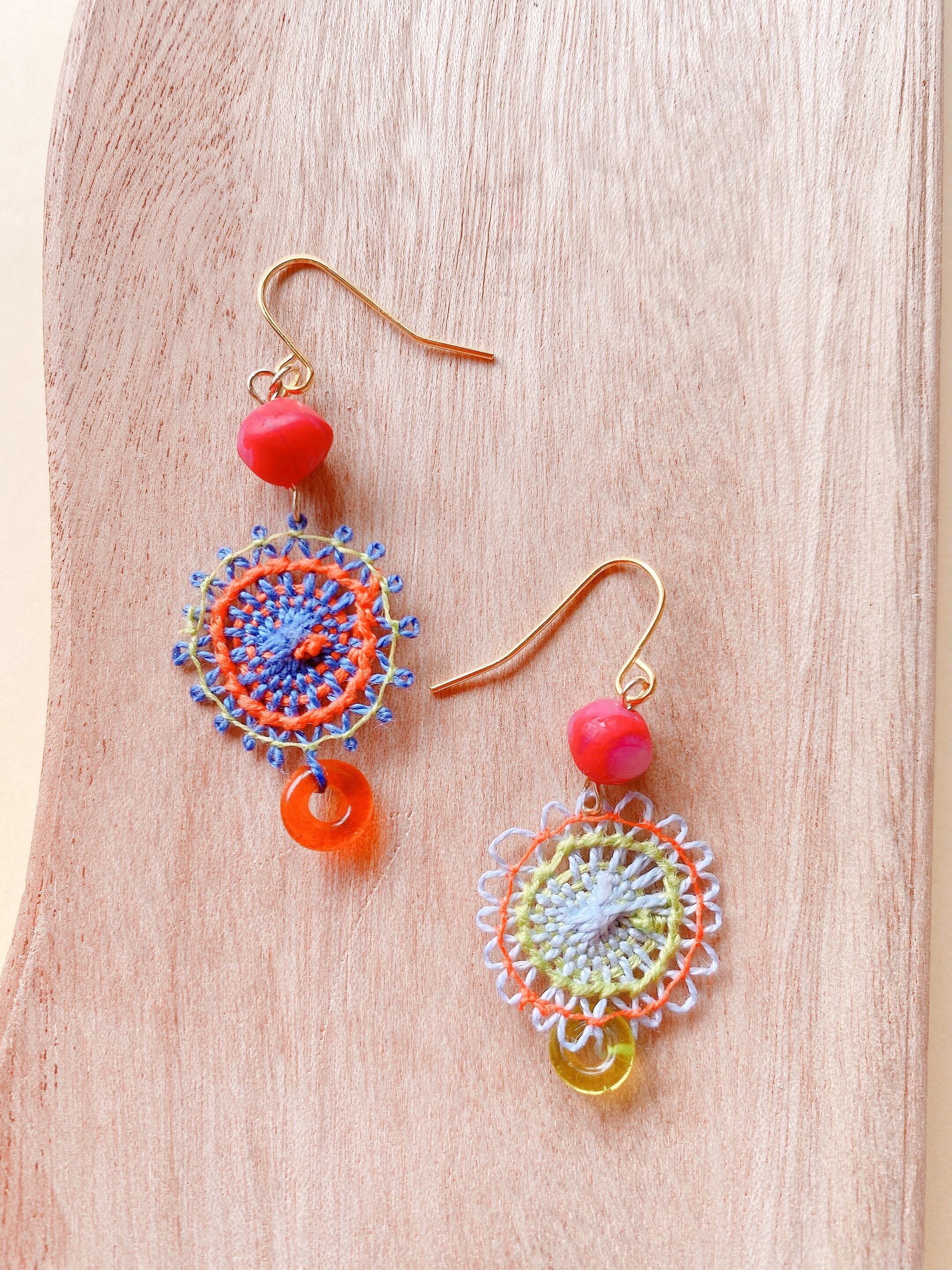 [材料] 刺繍糸・ガラス(下の丸いビーズはアフリカビーズ・上はトルコビーズです)ビーズ・ピアス金具
