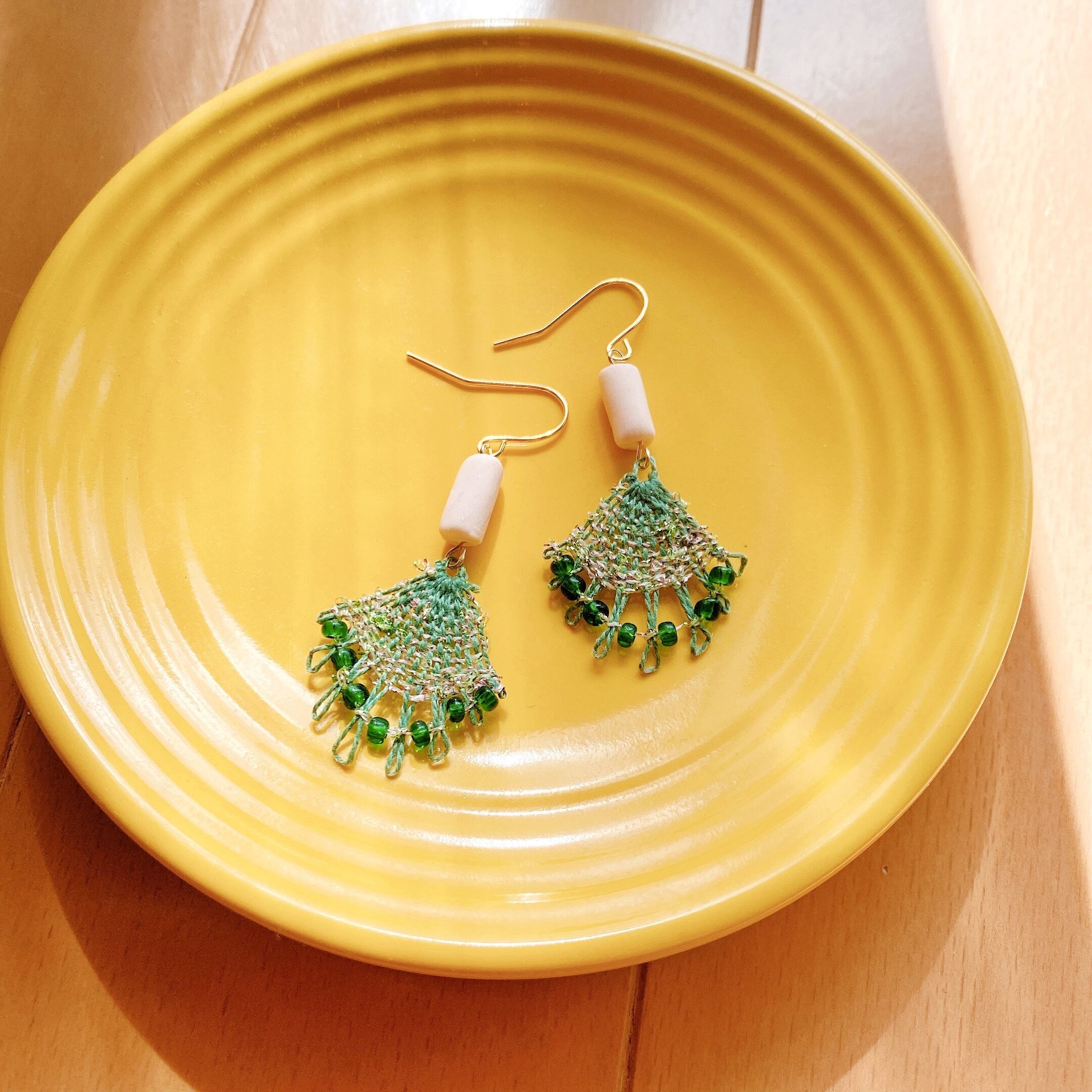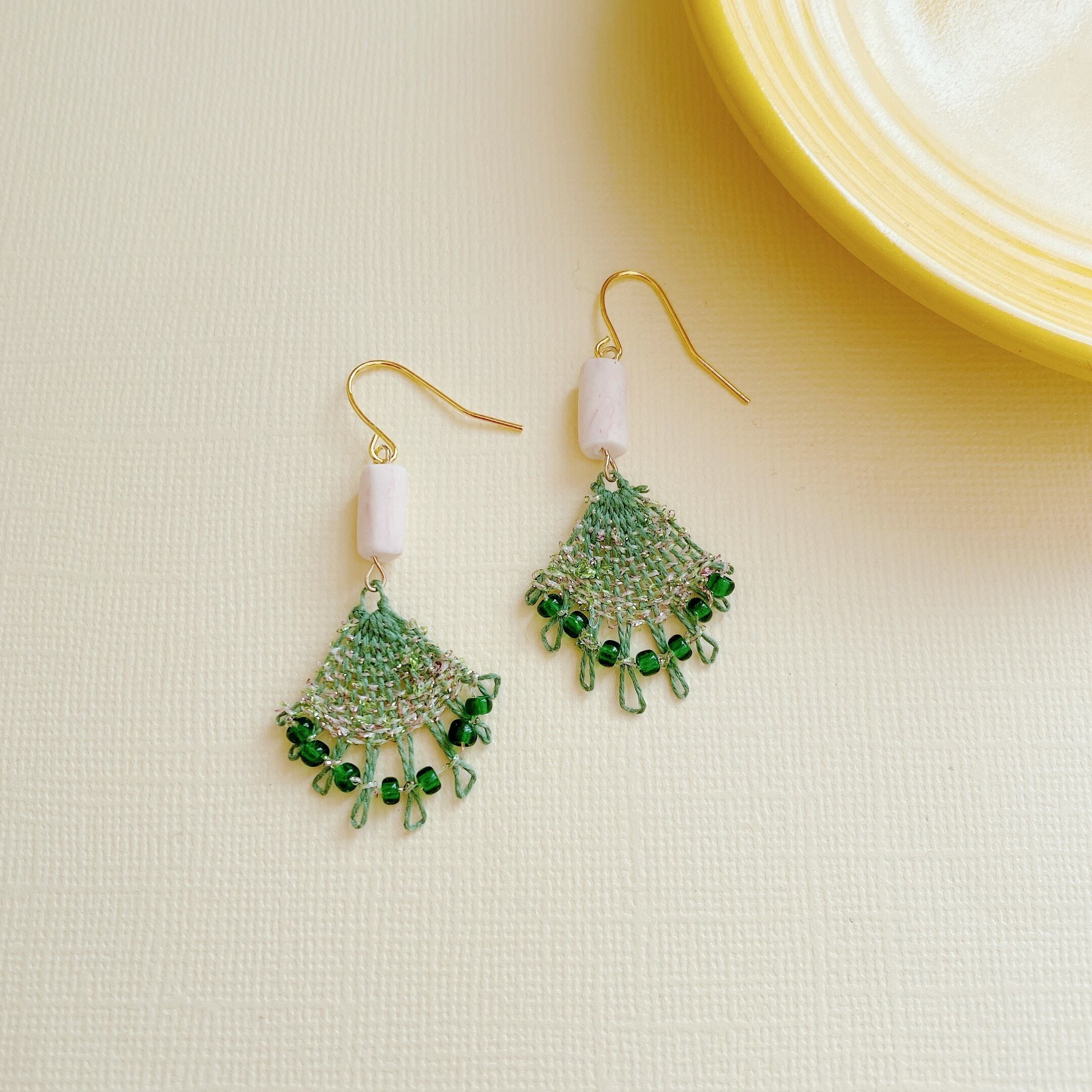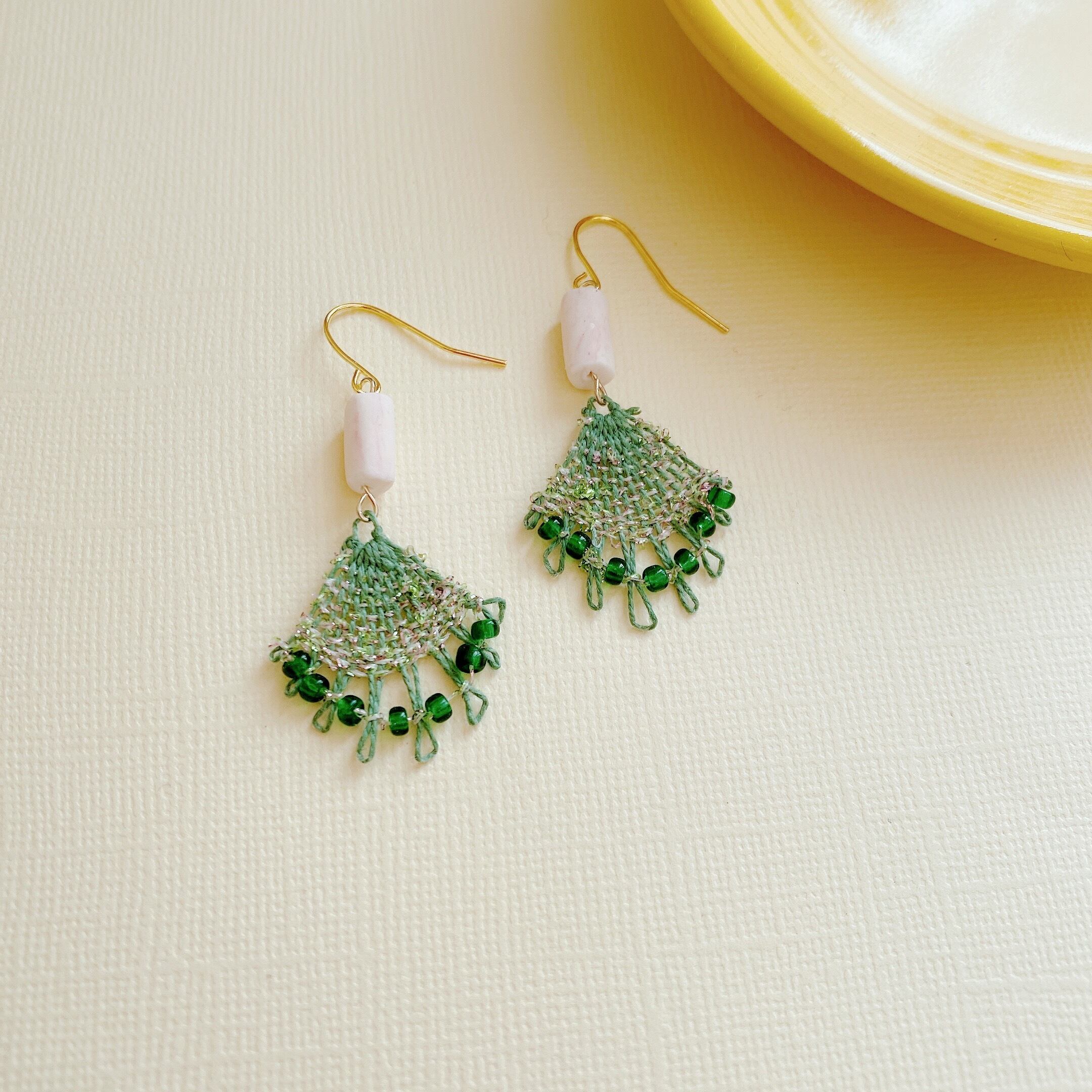 きらきら糸グリーンの実入りニャンドゥティのピアス