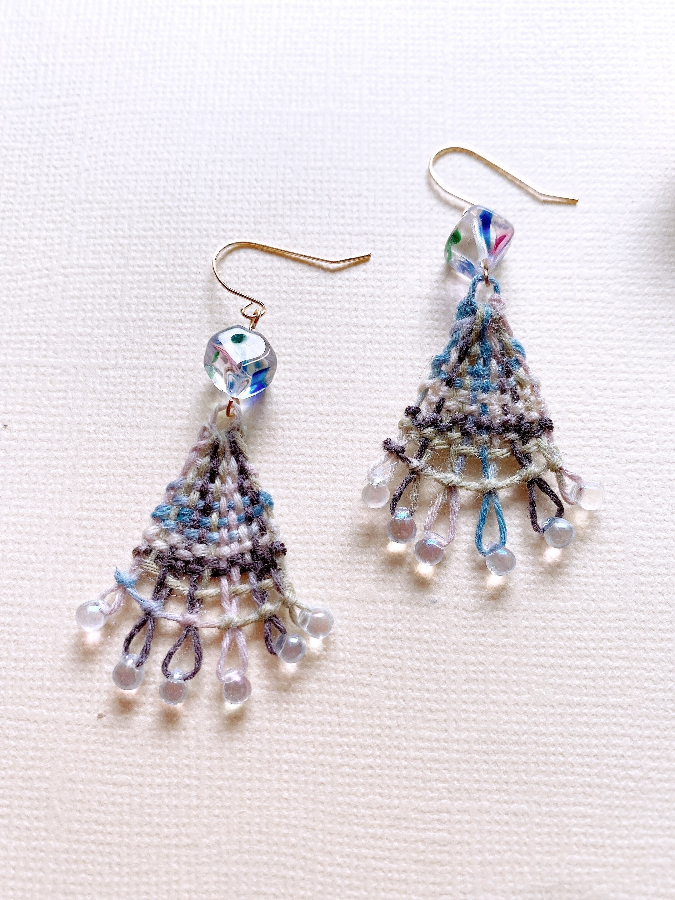 ランダムに出てくる色合いがほっこり、、ビーズは透明度の高いスクエアガラスビーズを