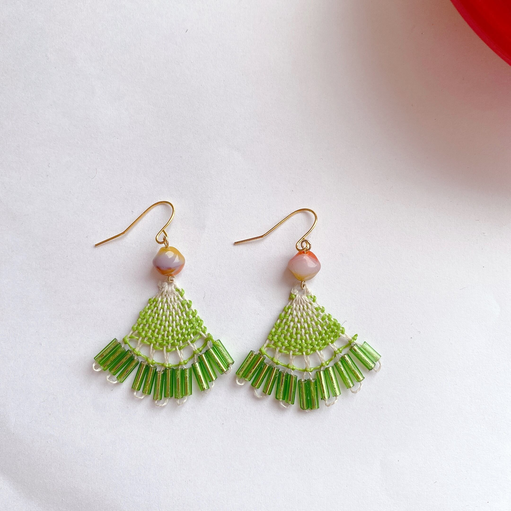 [材料] DMC刺繍糸・竹ガラスビーズ・トルコガラスビーズ・ピアス金具