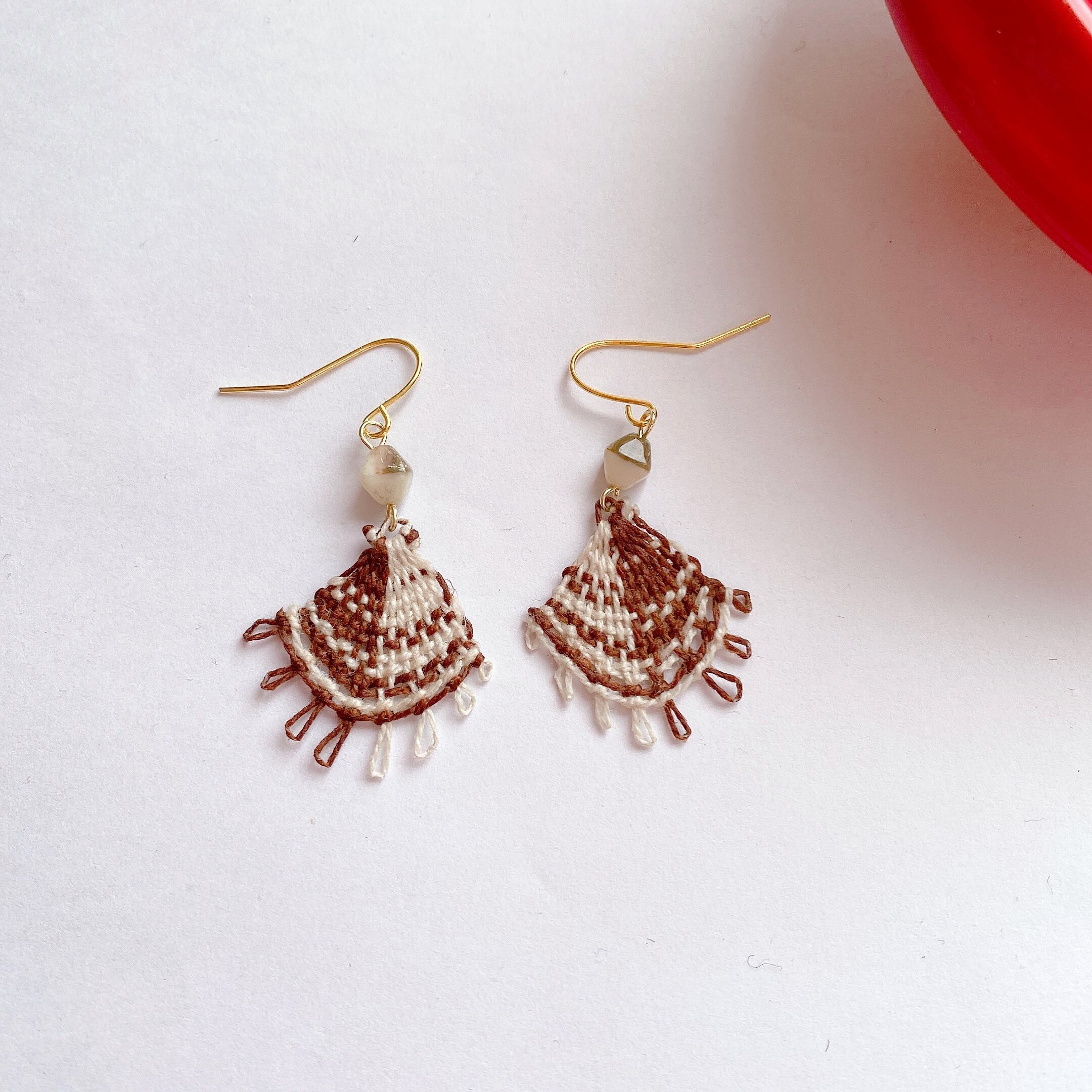 ブラウンチェックのニャンドゥティのピアス