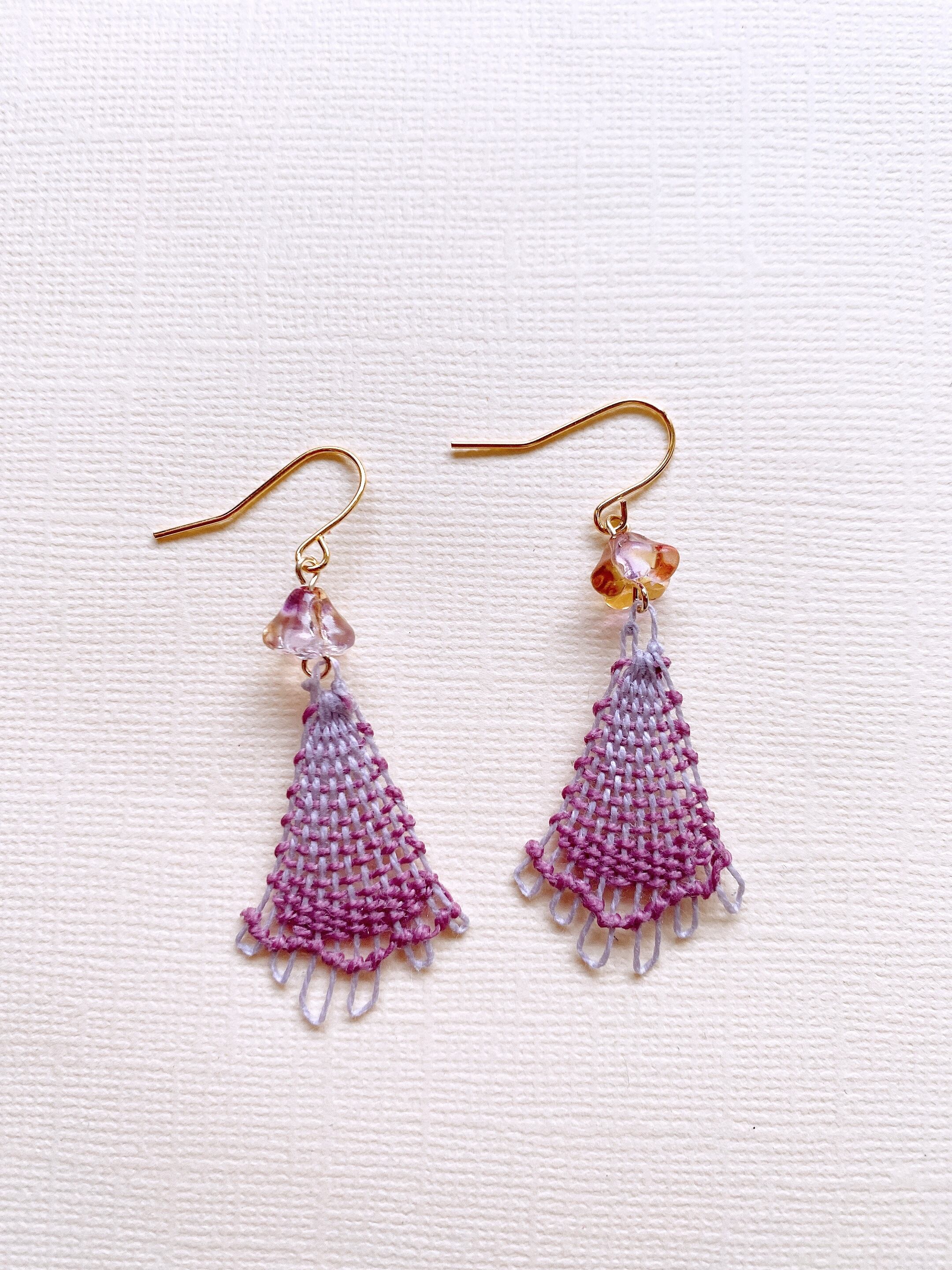 ぶどう色お花のニャンドゥティのピアス
