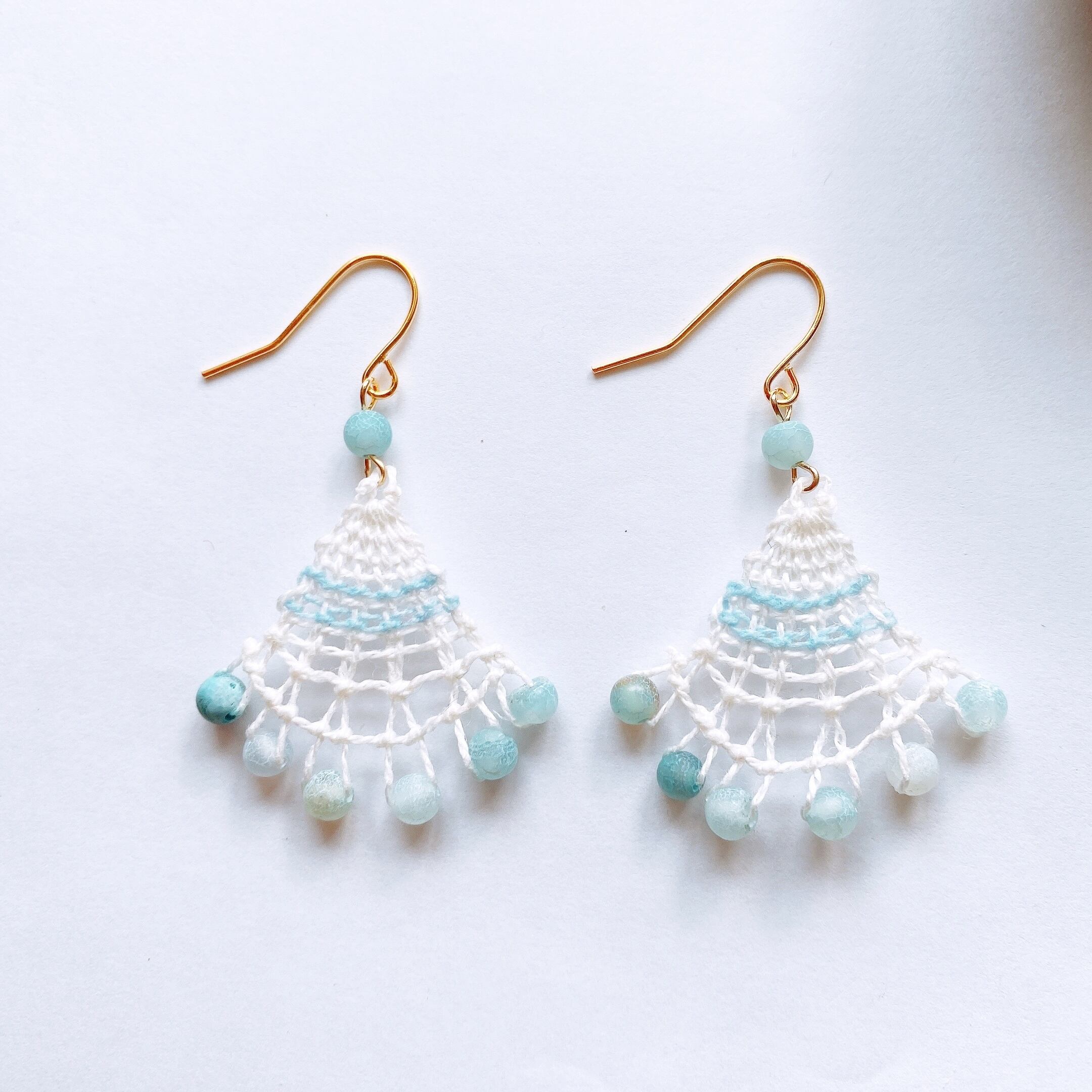 [材料] DMC刺繍糸・細めの綿糸・メノウビーズ(石ですが小さめなので軽いです)・ピアス金具