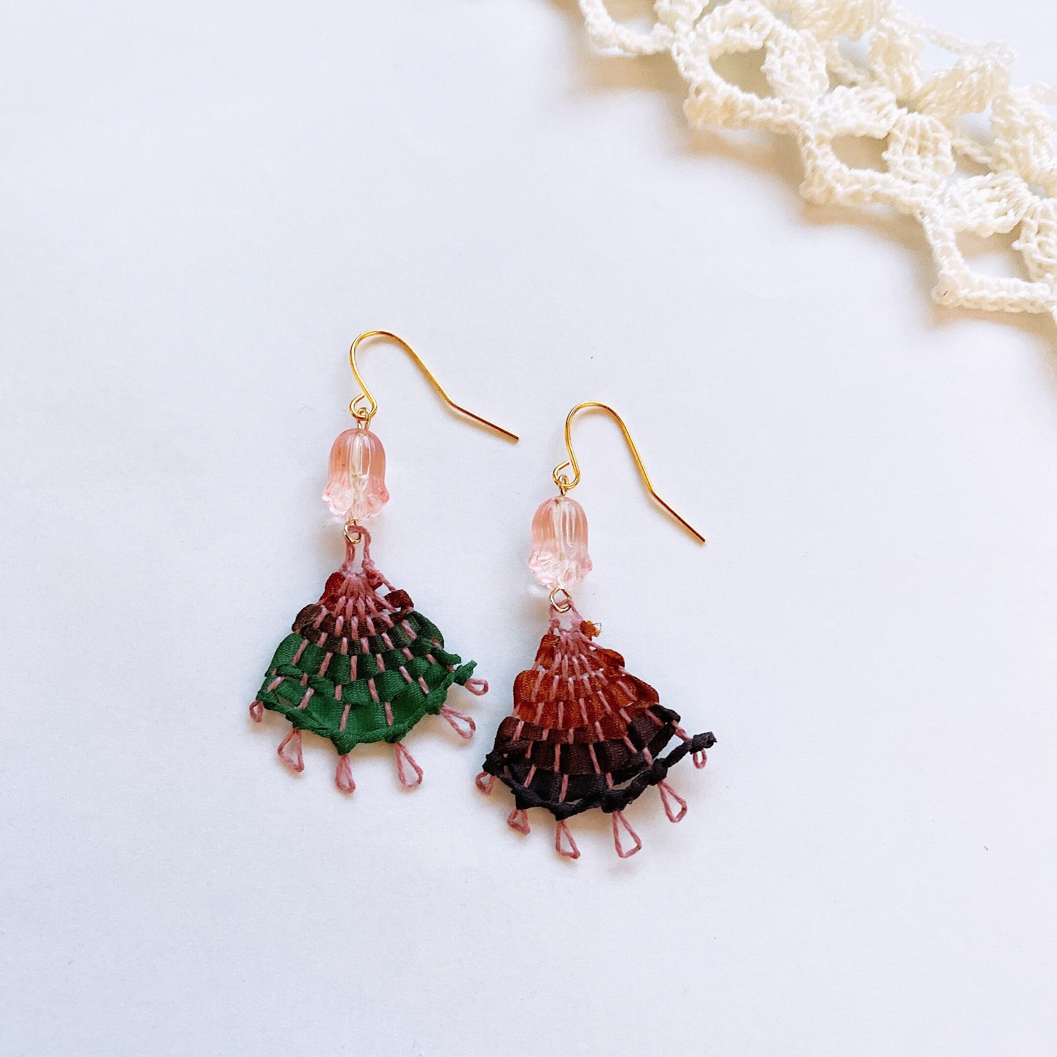 [材料] DMC刺繍糸・MOKUBAグラデーションリボン糸・トルコお花ガラスビーズ・ピアス金具