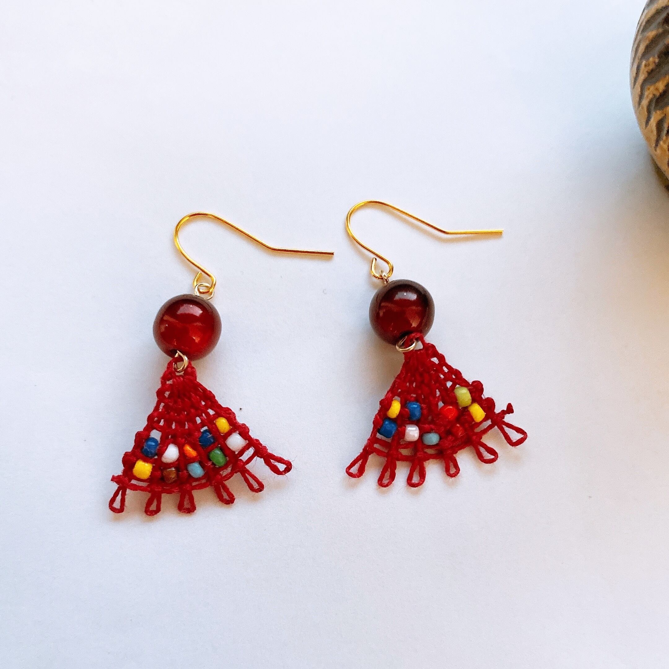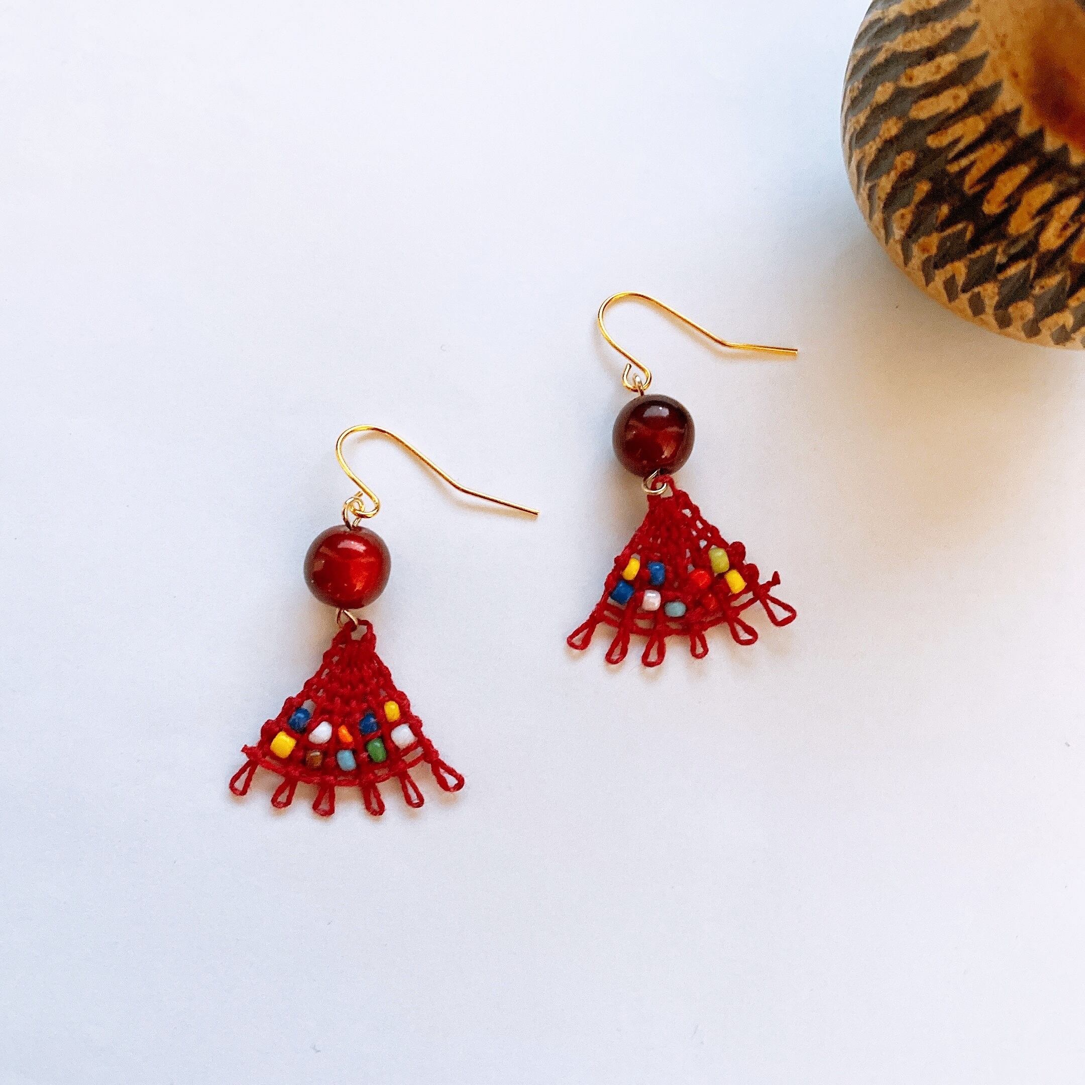 [材料] DMC刺繍糸・小さなカラフルガラスガラスビーズ・赤いトルコガラスビーズ・ピアス金具