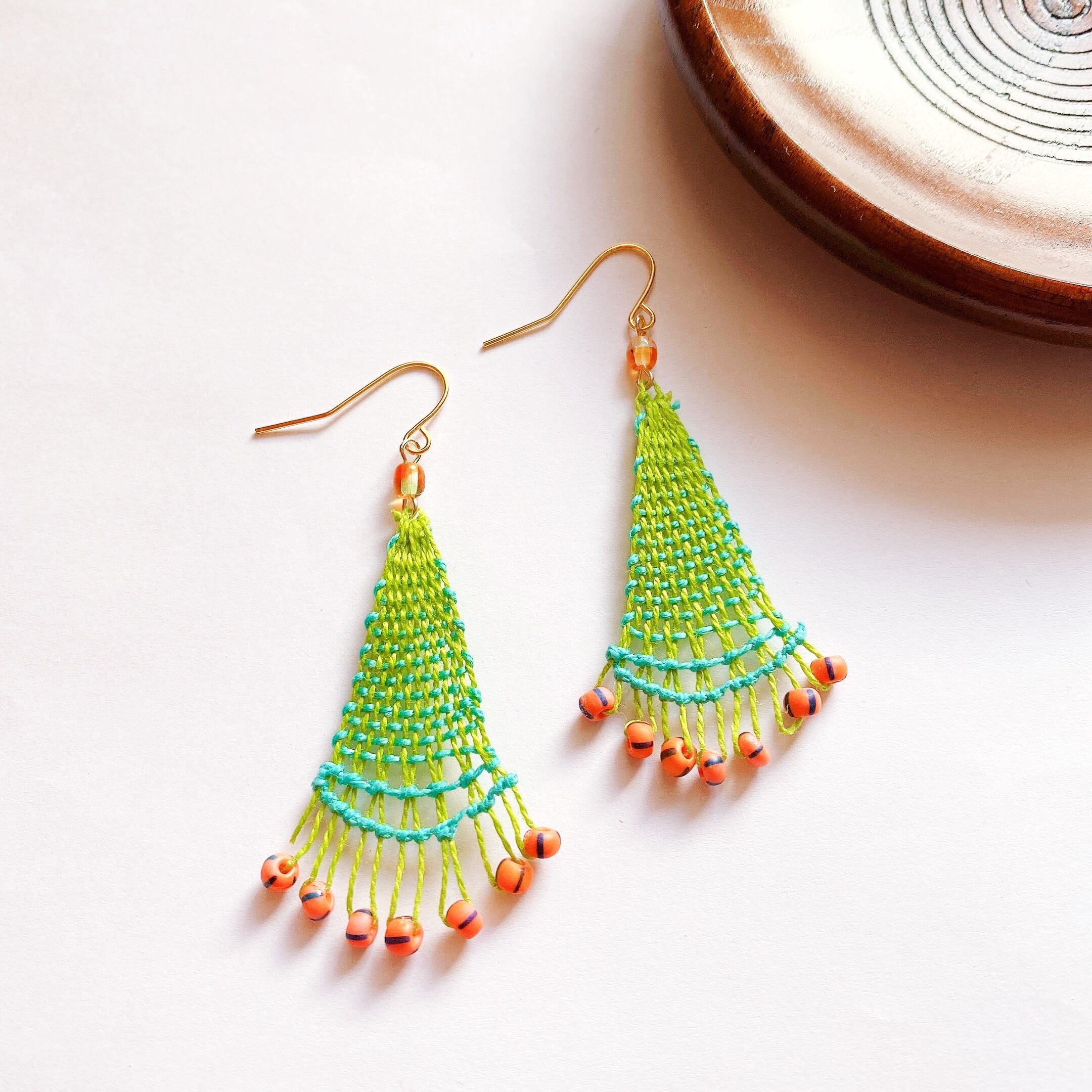 [材料] DMC刺繍糸・ストライプオレンジ小さなビーズ・トルコビーズ・ピアス金具