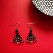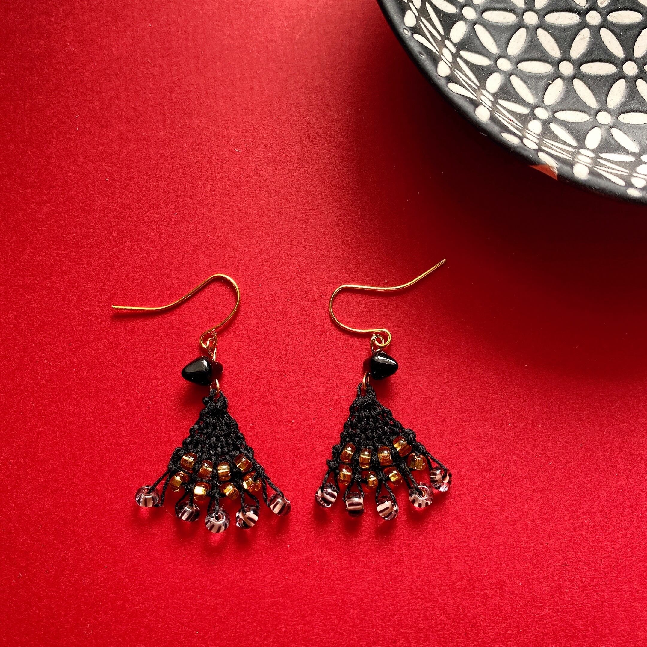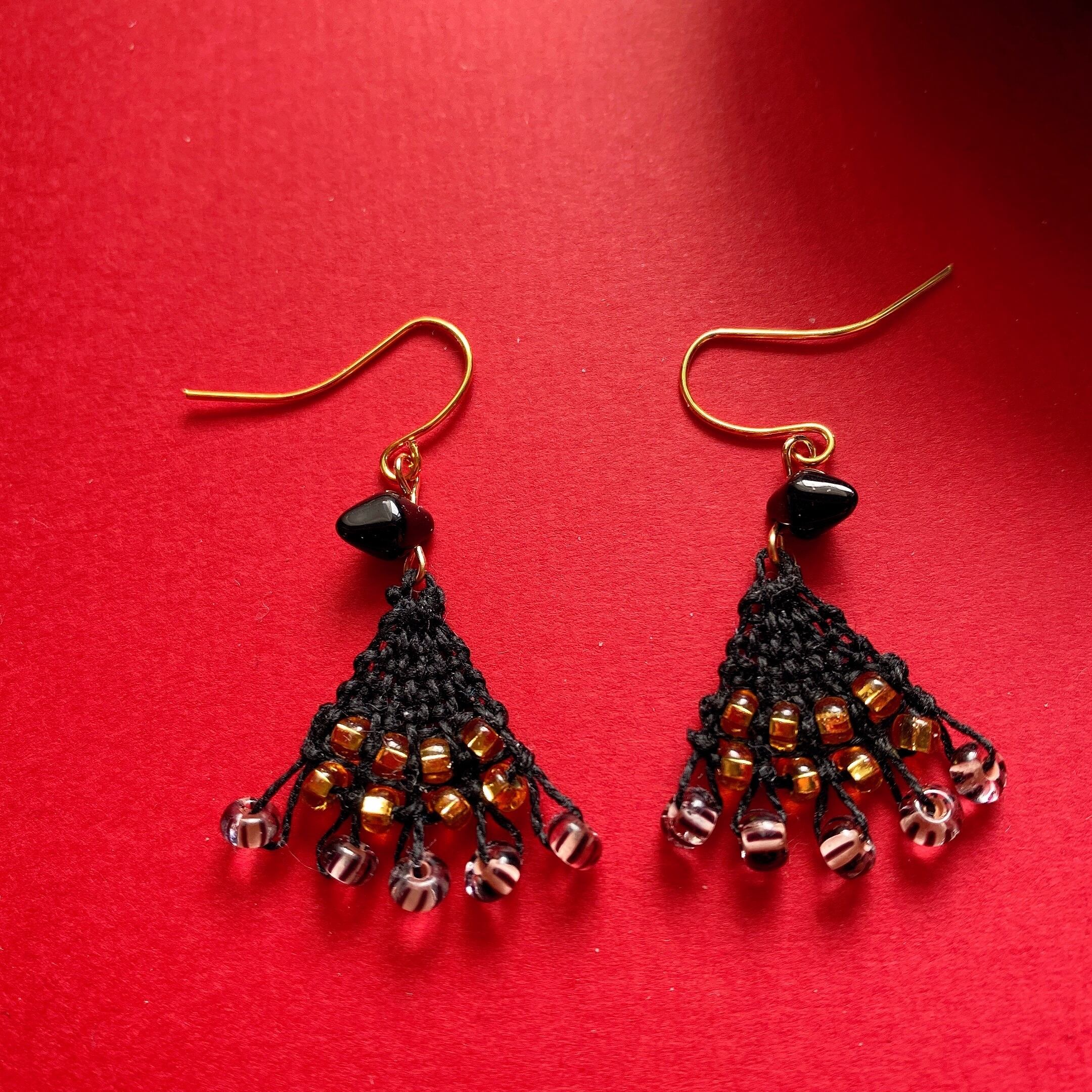 ドラマエミリーパリに行くでエミリーの来ていた黒いドレスのイメージを小さく閉じ込めました。下についているビーズは透明プラスブラックのストライプ。