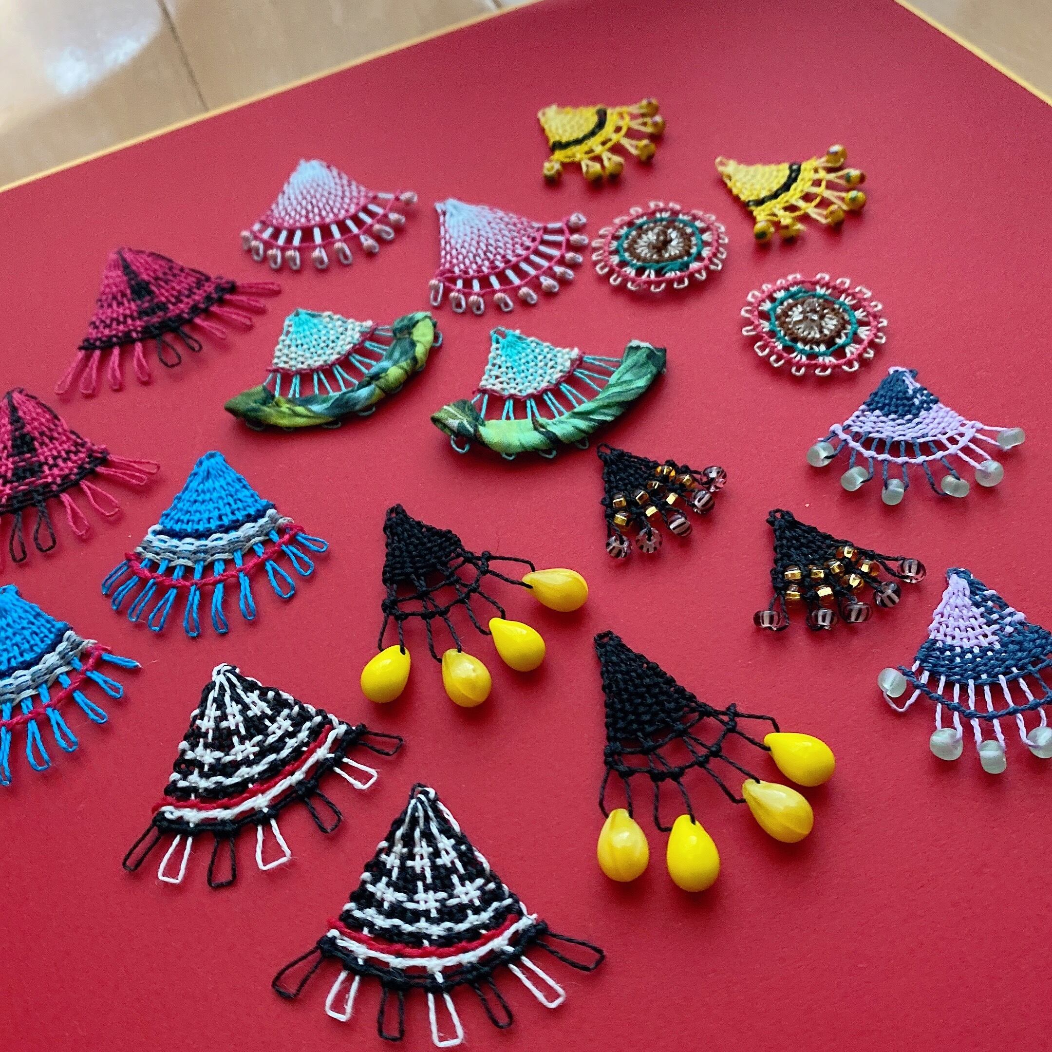 布に引っ掛ける様に刺繍するため最後に糊付けし、固めるとパリッと布から剥がれます。
