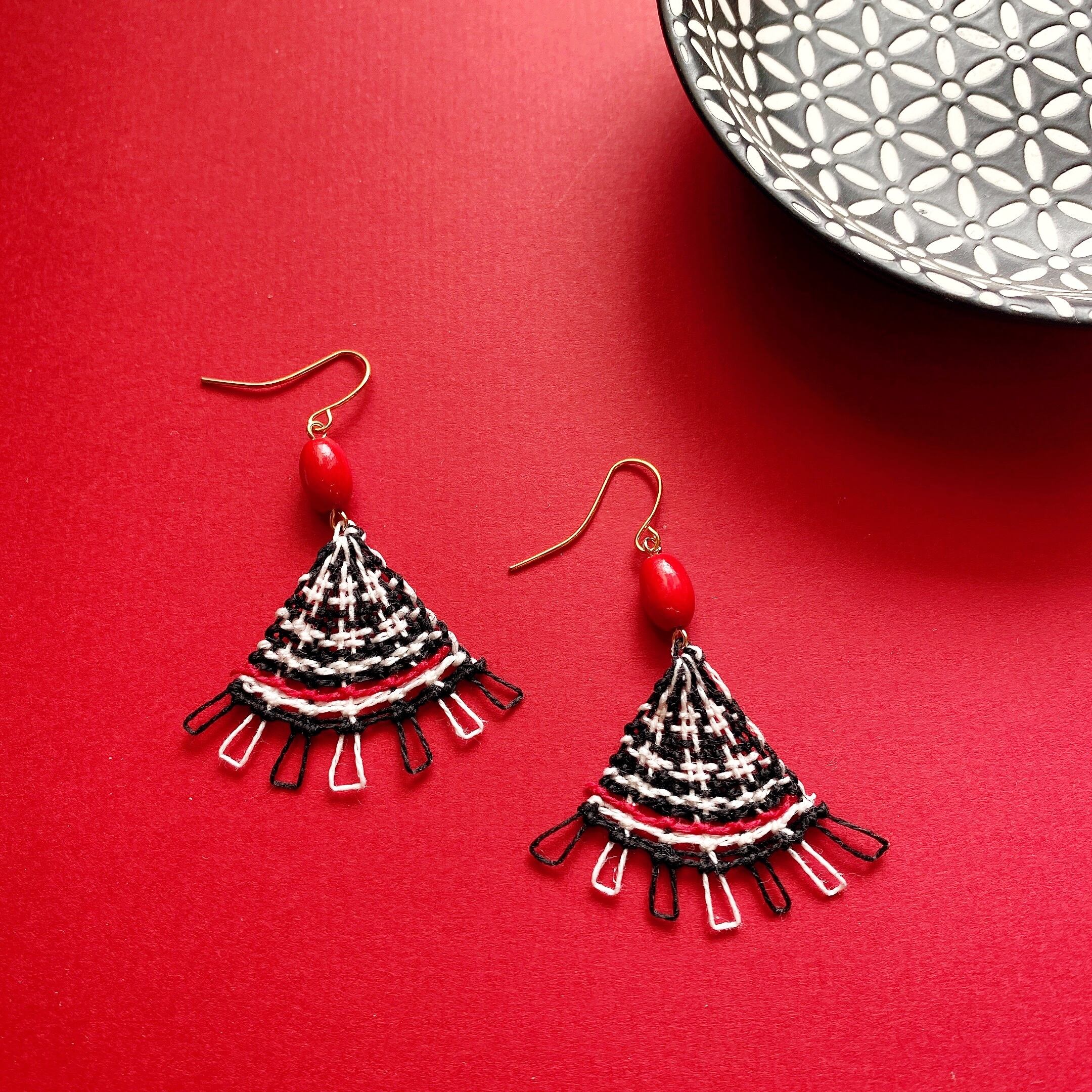 [材料] 刺繍糸・赤いウッドビーズ・ピアス金具