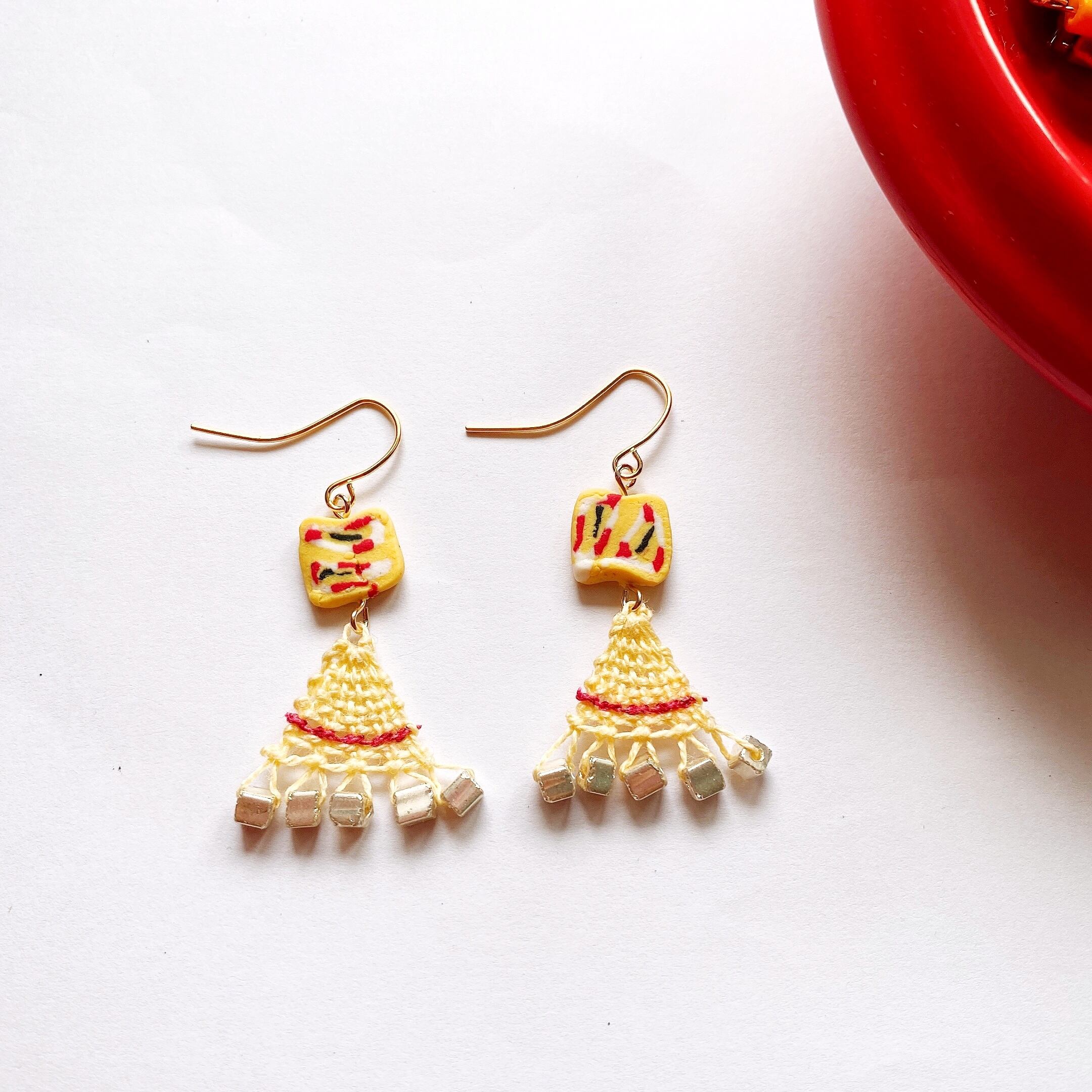 ケーキをスライスしたような樹脂ビーズをメインに、薄いイエローの小さなデザインです。