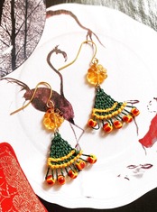 色がとてもかわいい花の形のガラスビーズにあわせてグリーン・黄色をいれました。