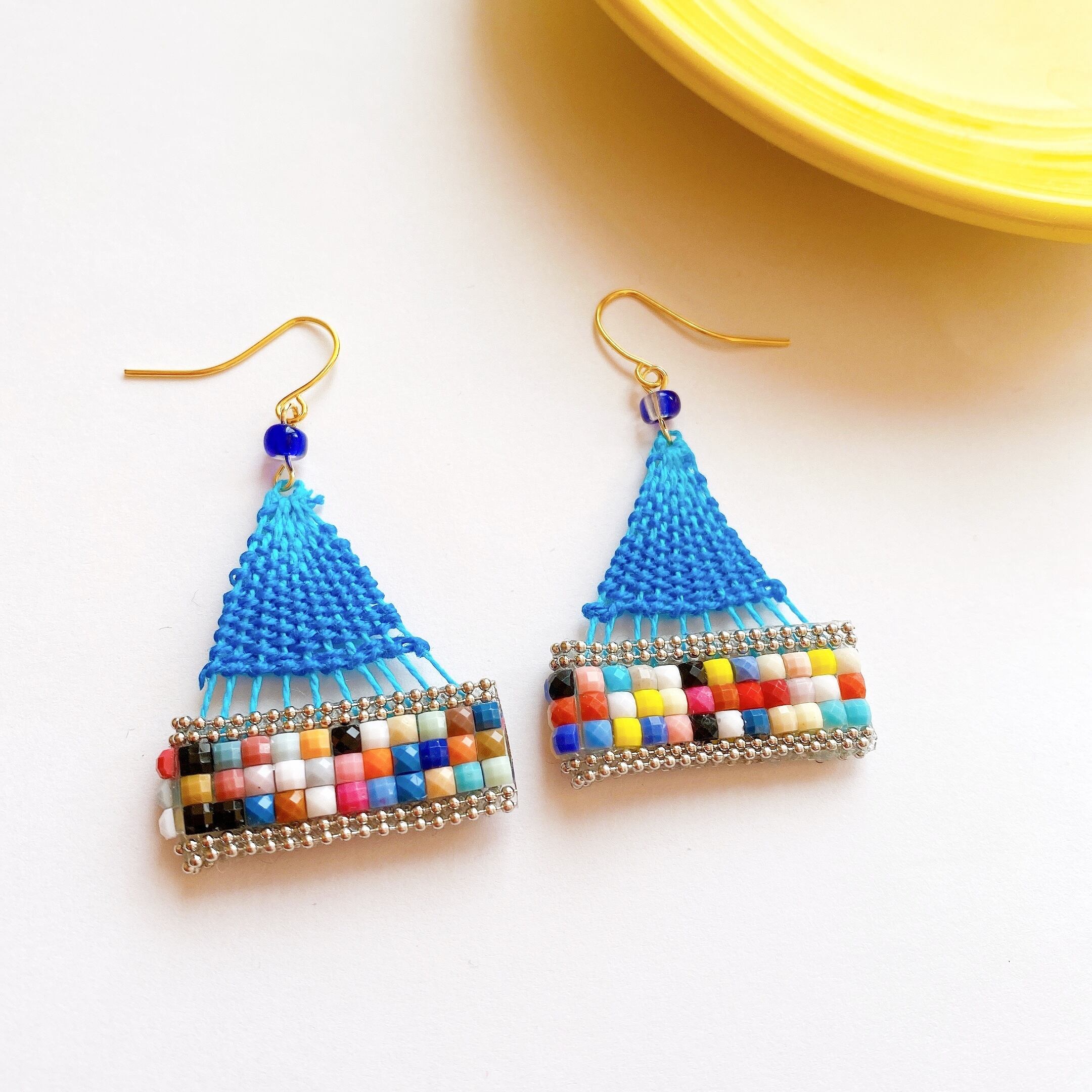 トライアングルニャンドゥティのピアス(スカイブルー)