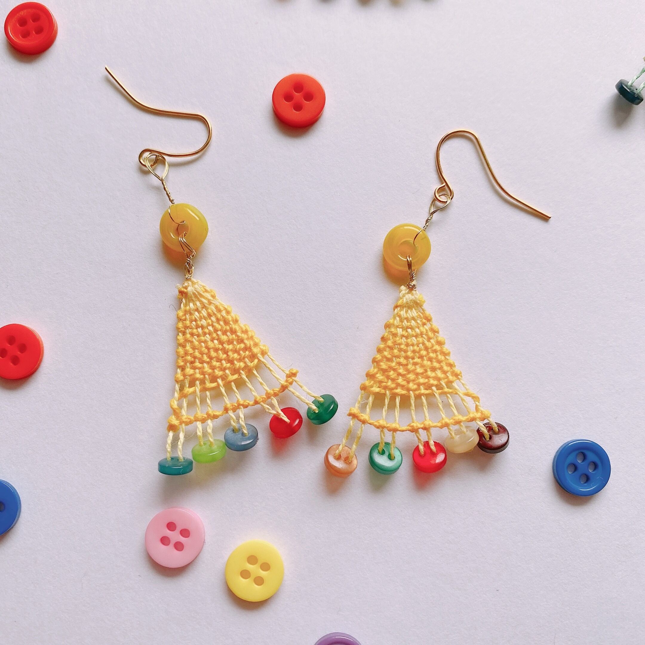 ボタンマニア!5mmの小さなボタン付きニャンドゥティのピアス(黄色)