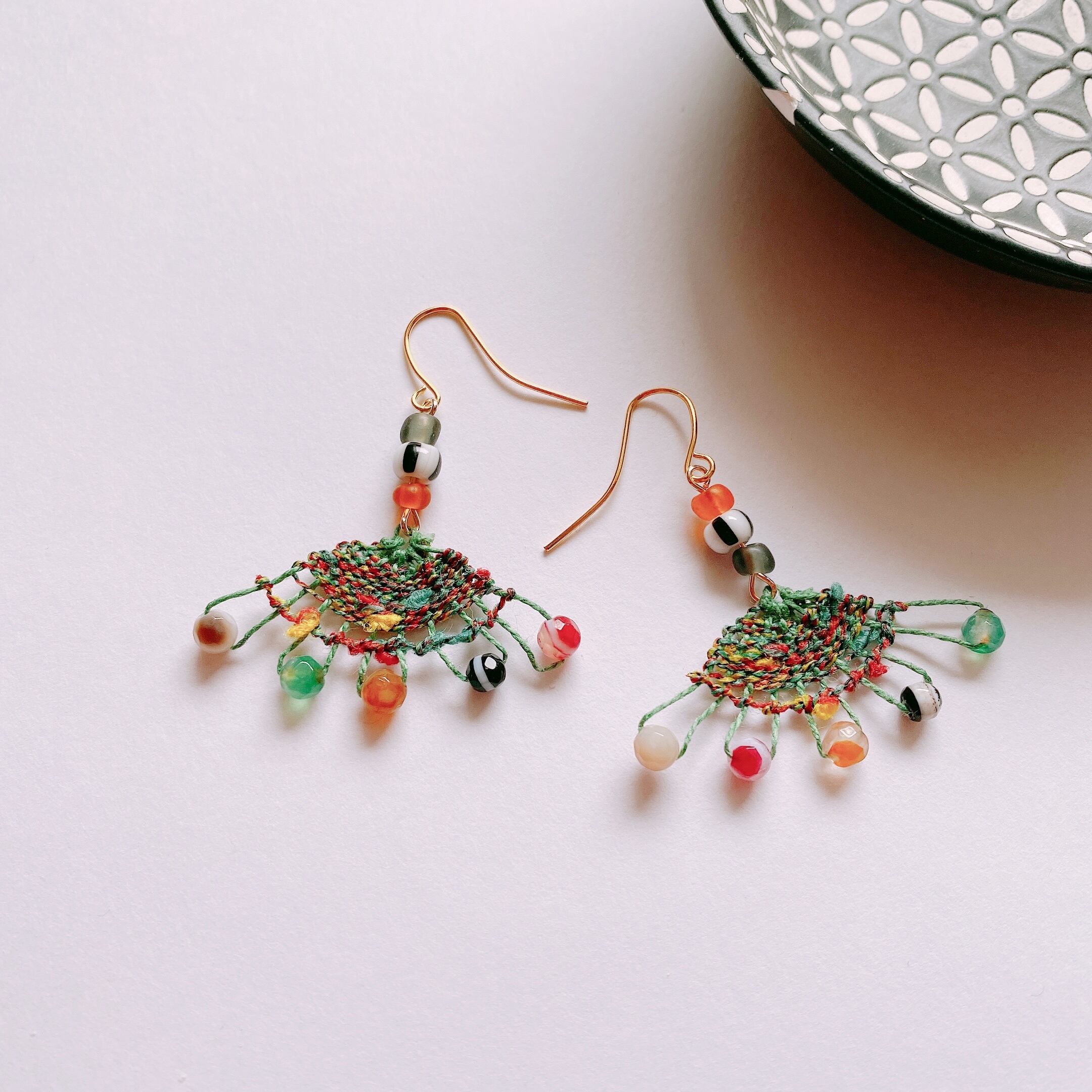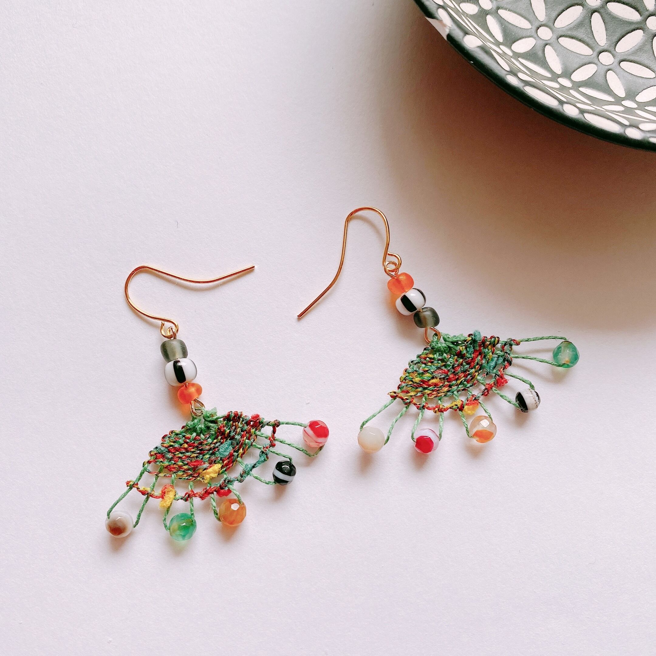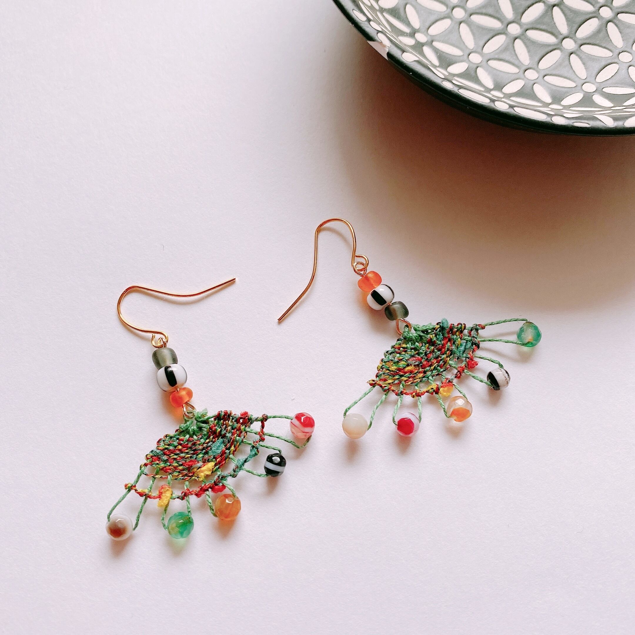 エスニックでカラフルグリーンニャンドゥティのピアス