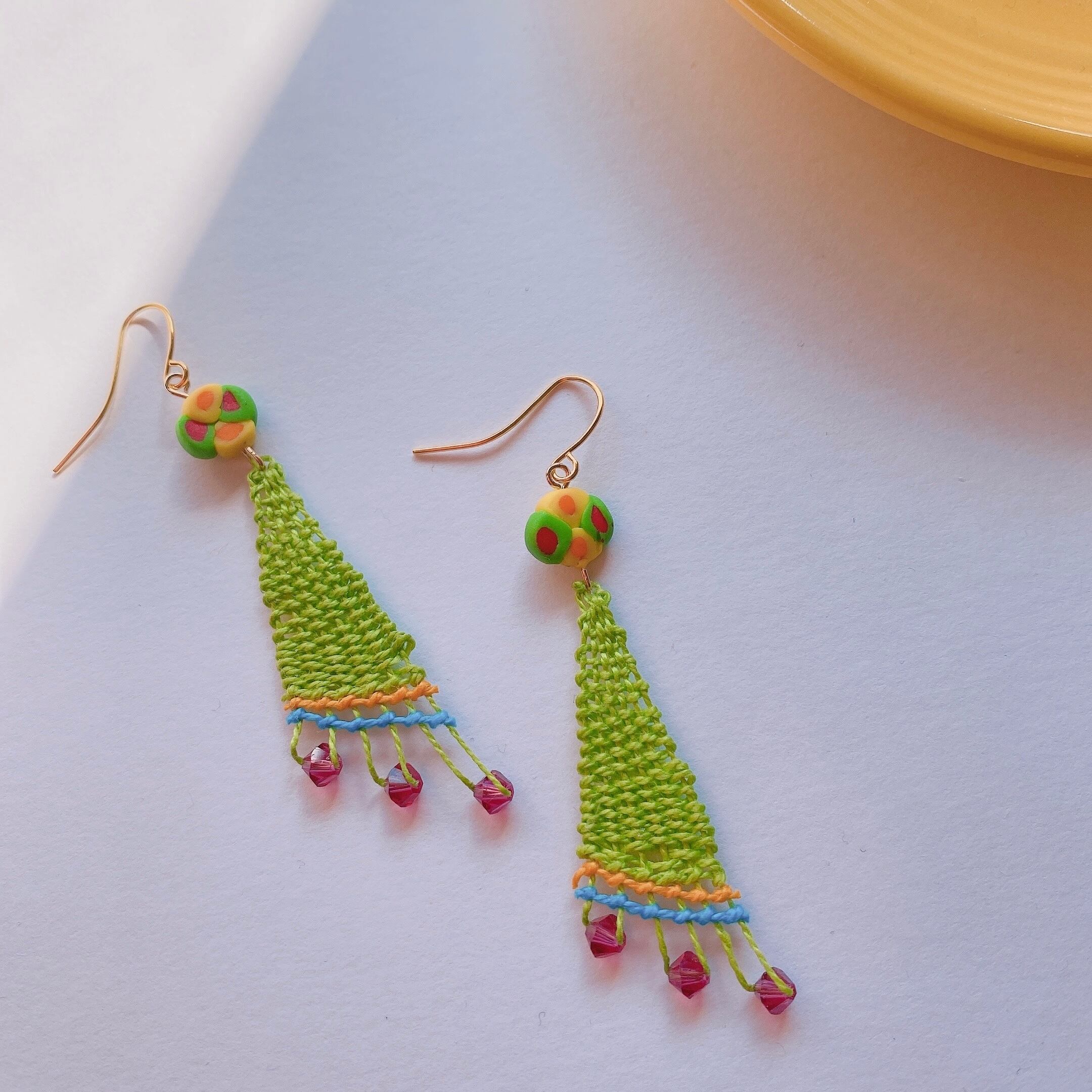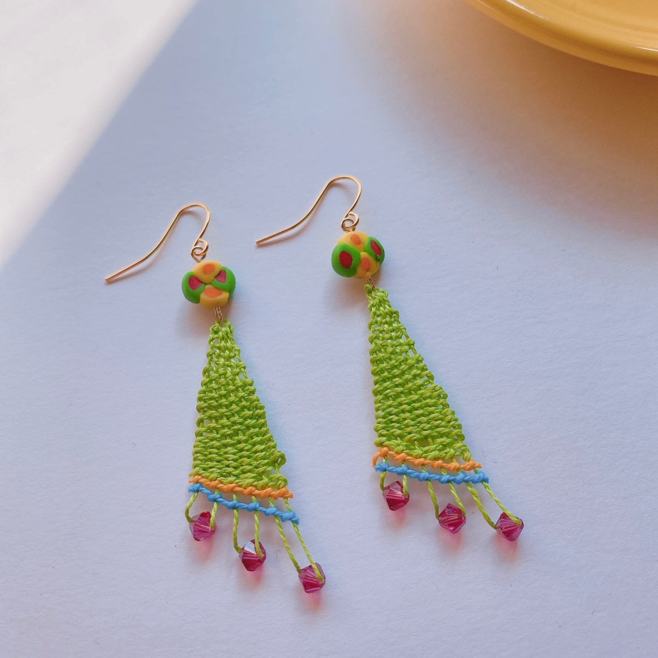 [材料]グリーン刺繍糸・カラフルが入った綿糸・天然石ビーズ・ピアス金具