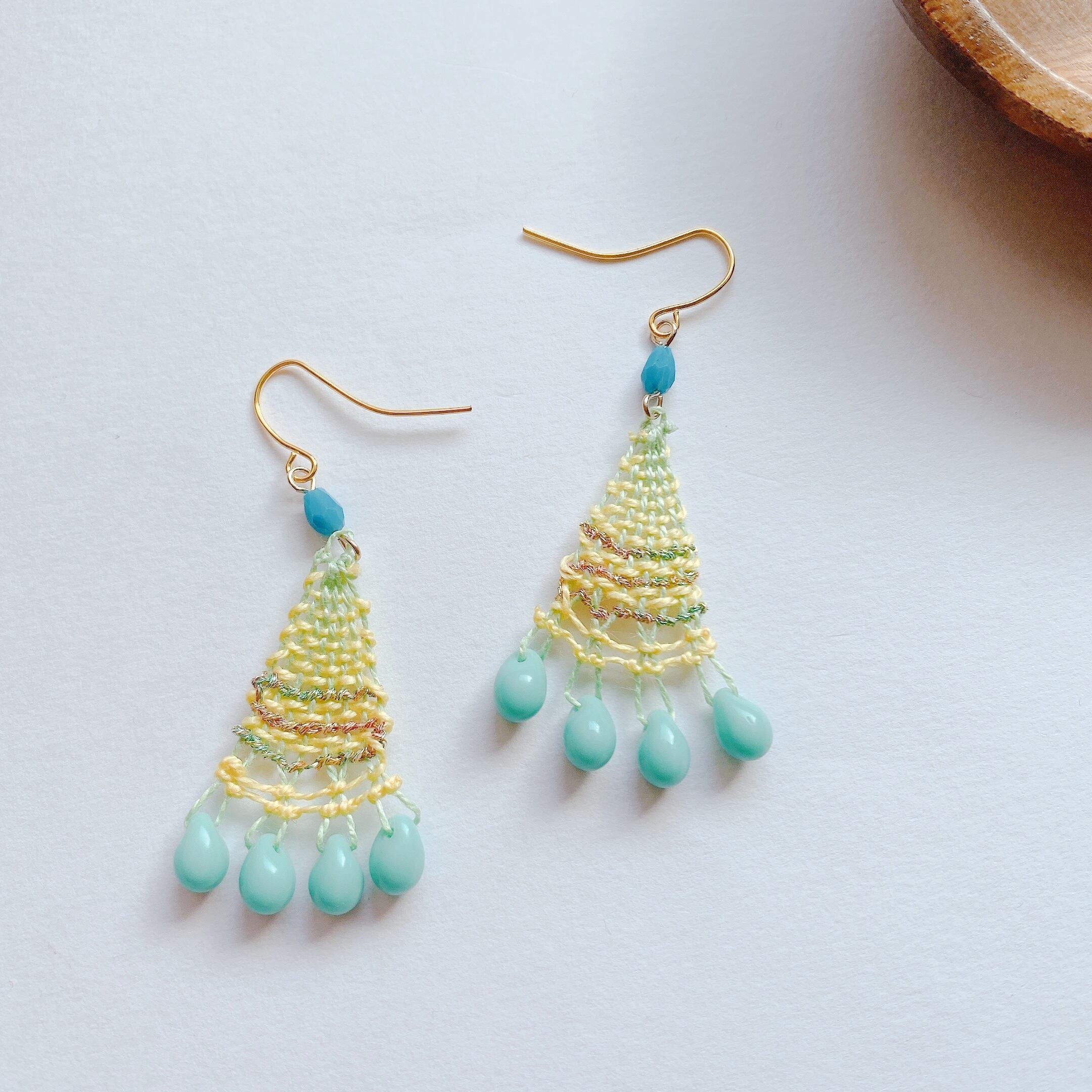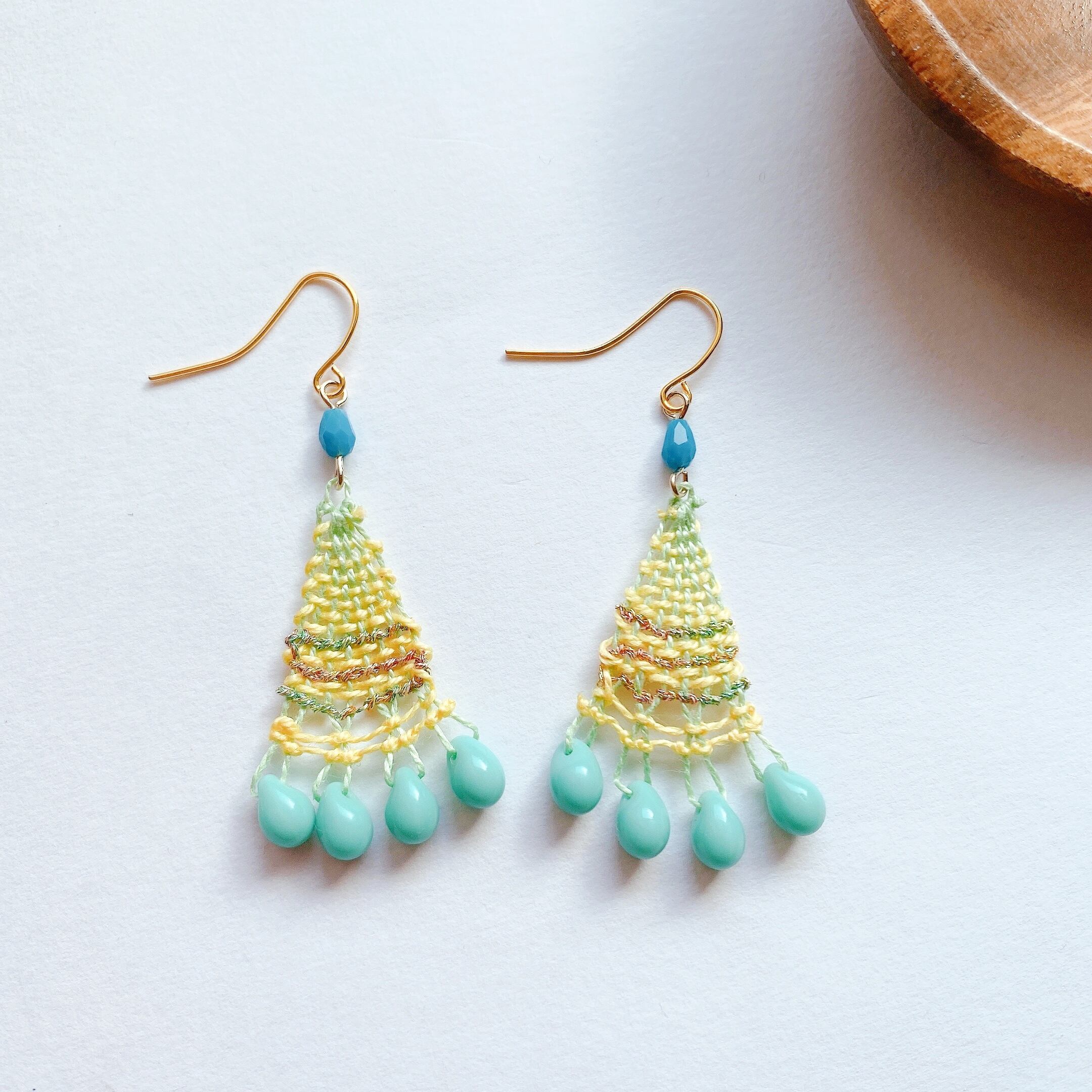 ブルーキュラソーカクテルのようなニャンドゥティのピアス