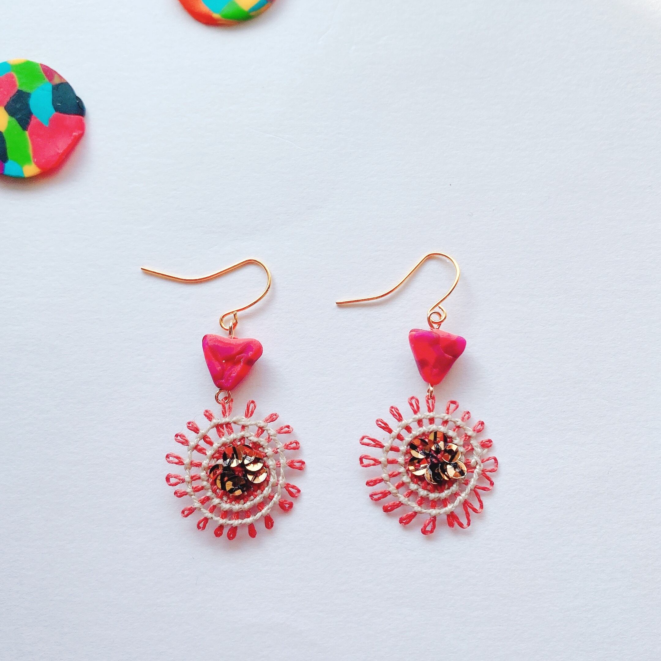 コロンとさくらんぼをモチーフに真ん中にはブラウン色のスパンコールを光らせました。