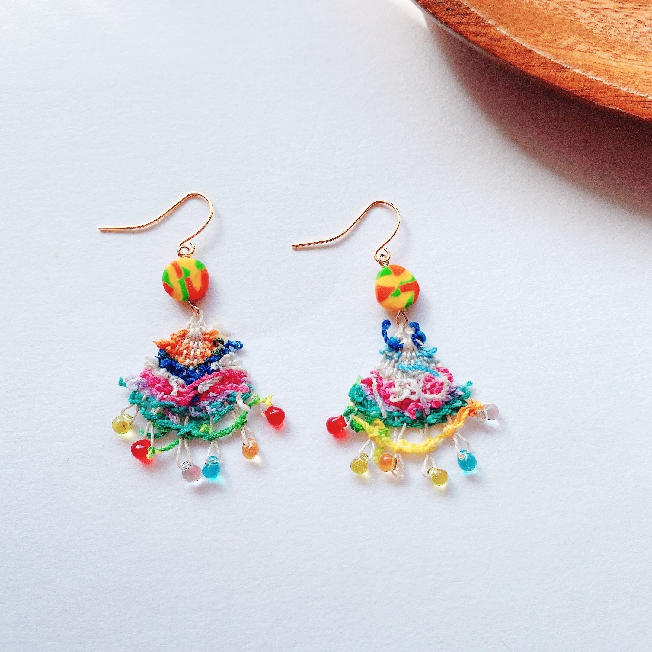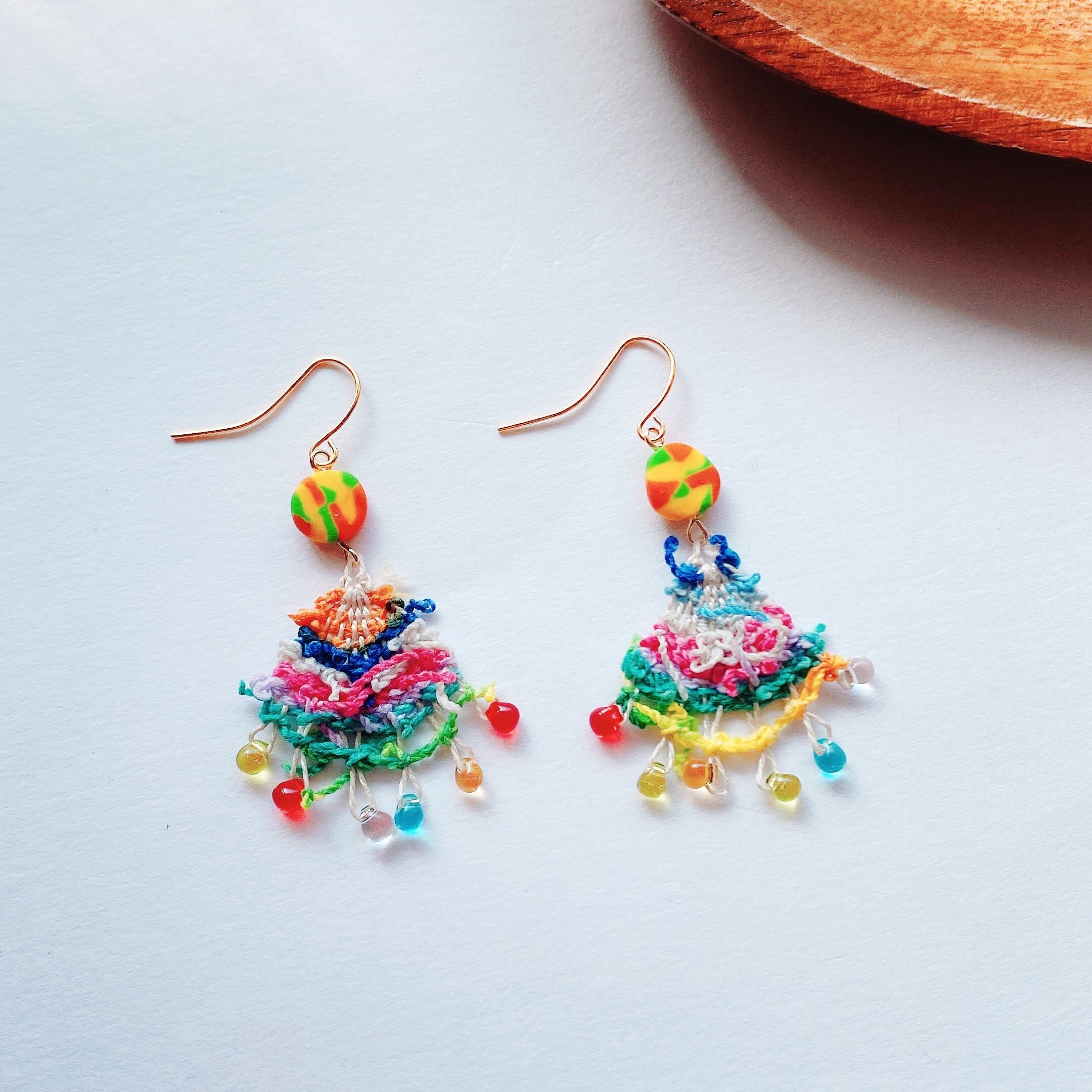 [材料] カラフル変わり糸・小さなしずく型ビーズ・オリジナル樹脂ビーズ・ピアス金具