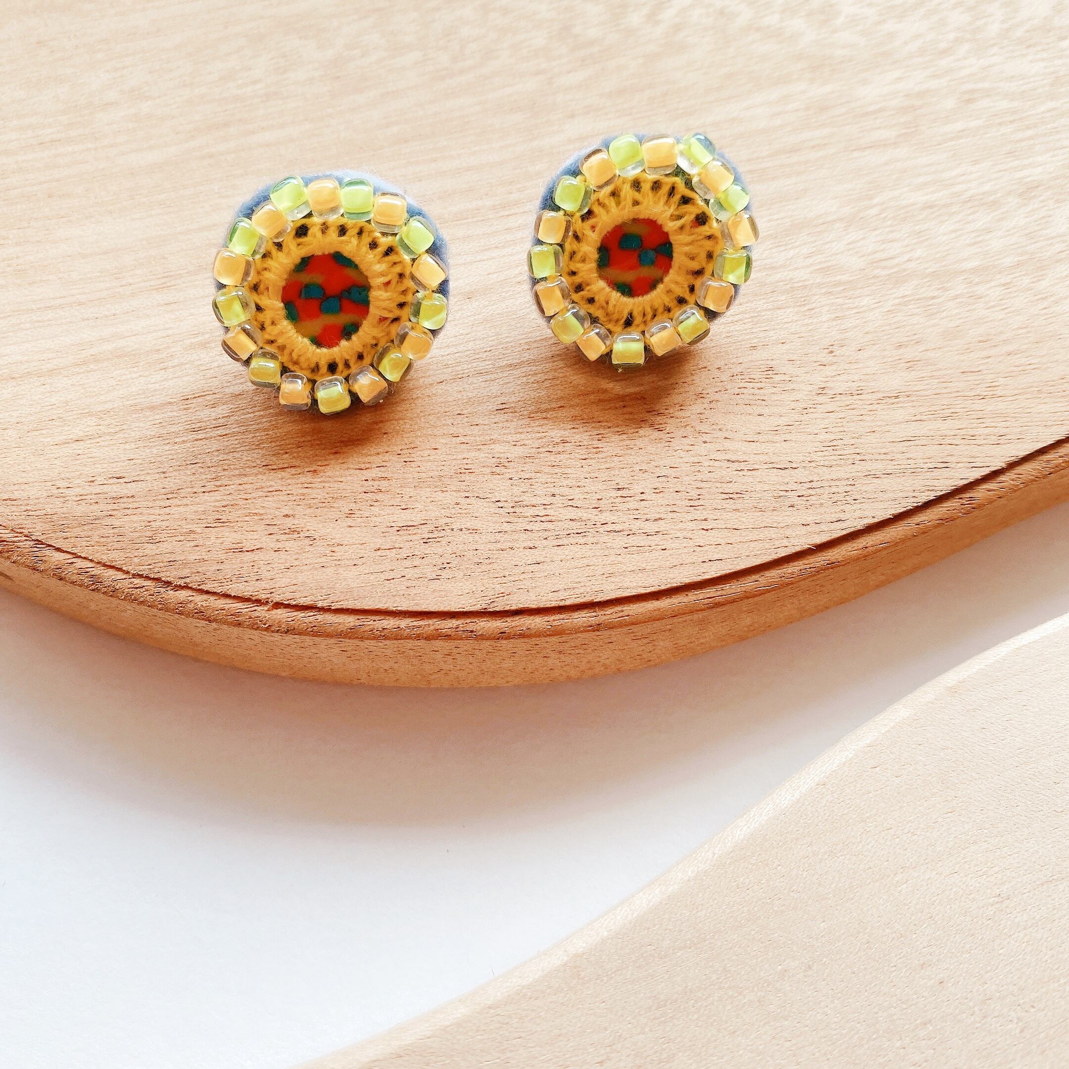 [材料] 刺繍糸・ガラスビーズ・薄く伸ばした樹脂パーツ・厚手フェルト・ピアス金具