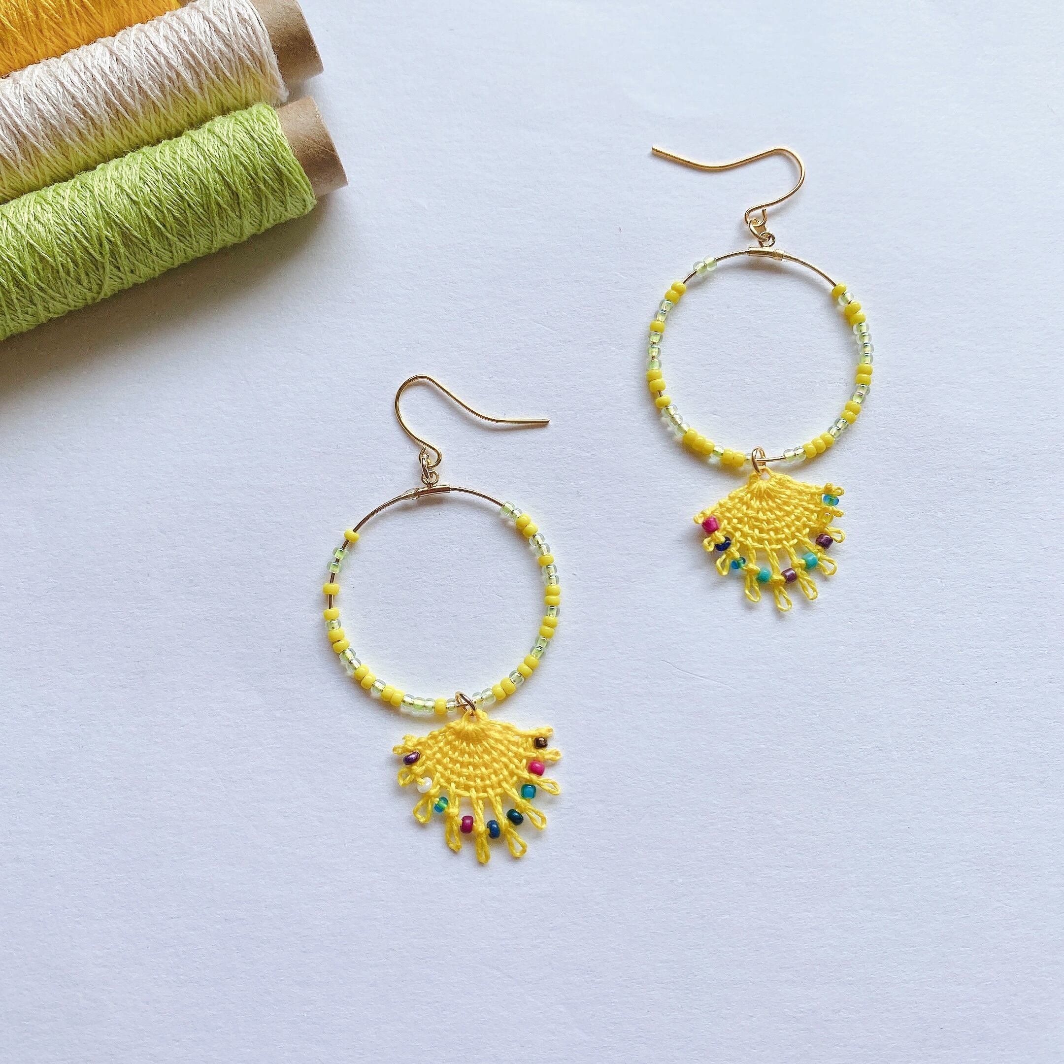 [材料] 黄色刺繍糸・小さめ小粒ビーズ・フープ・ピアス金具