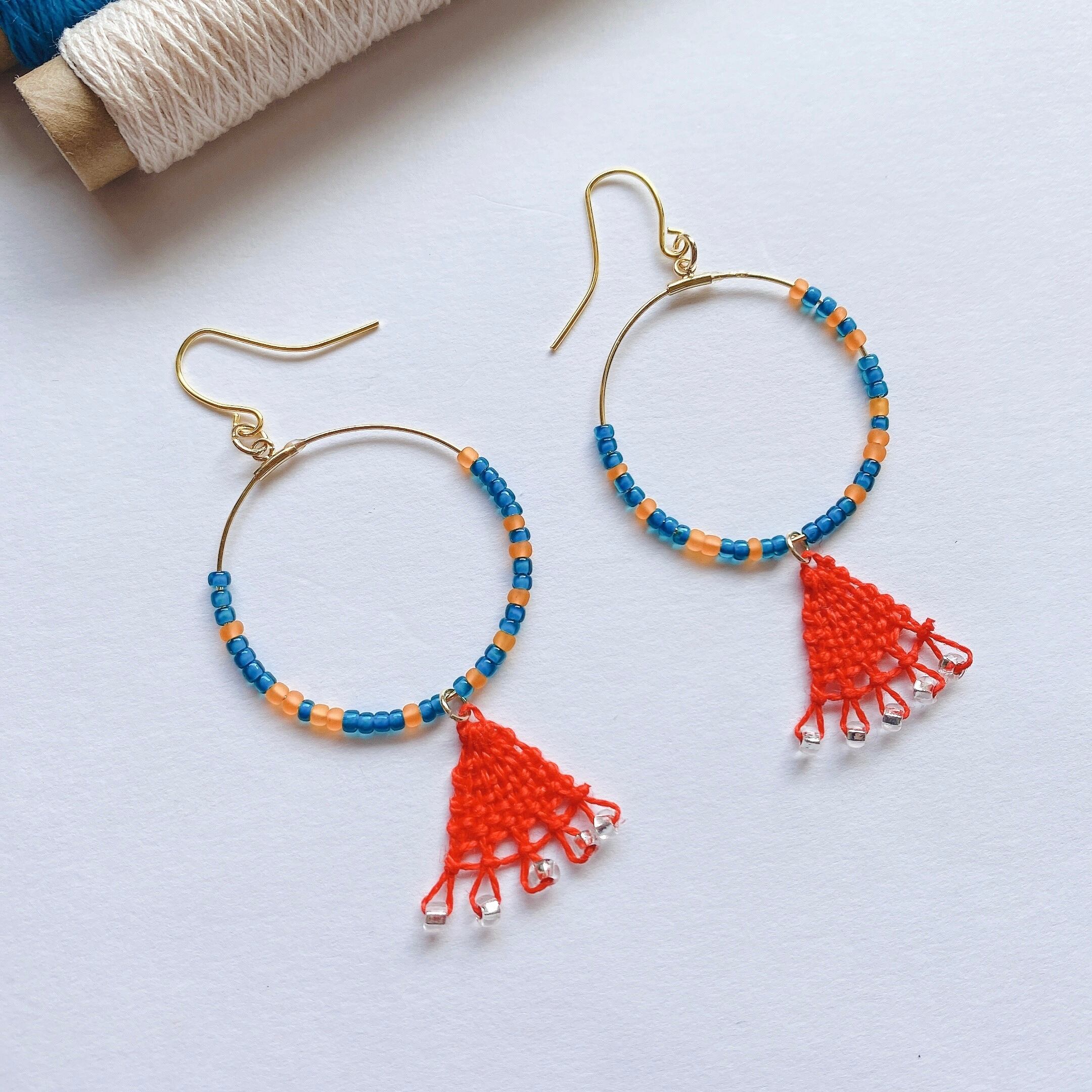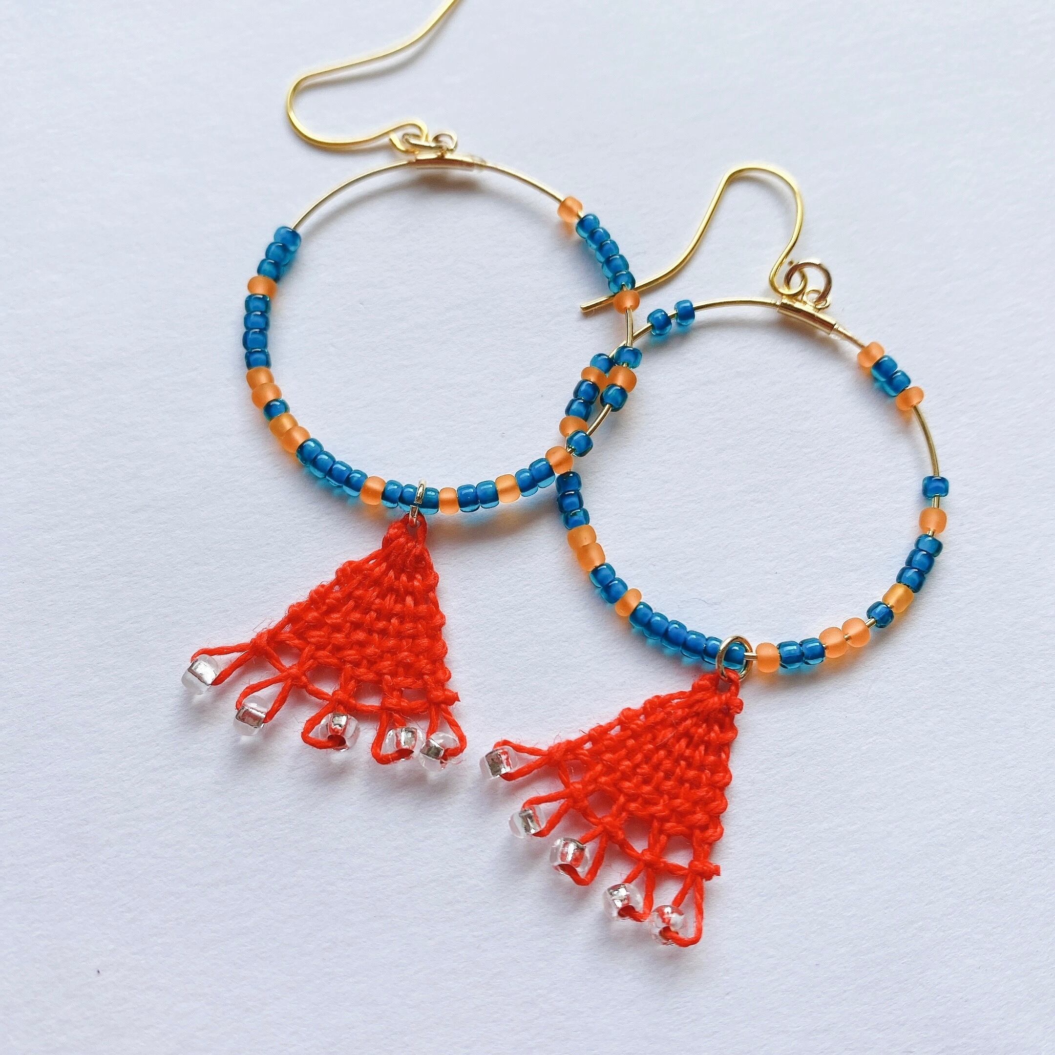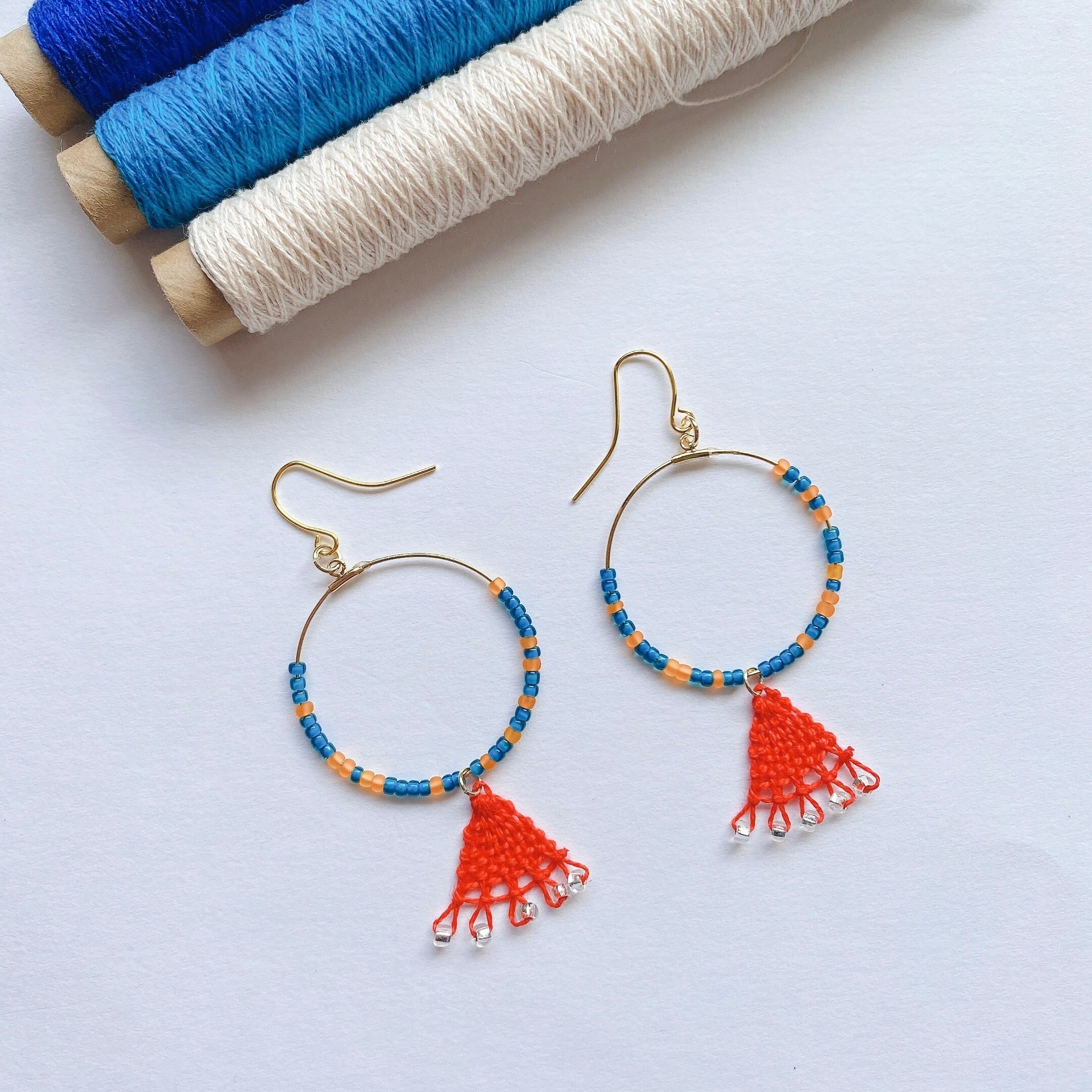 オレンジ&コバルトブルー小粒ニャンドゥティのピアス