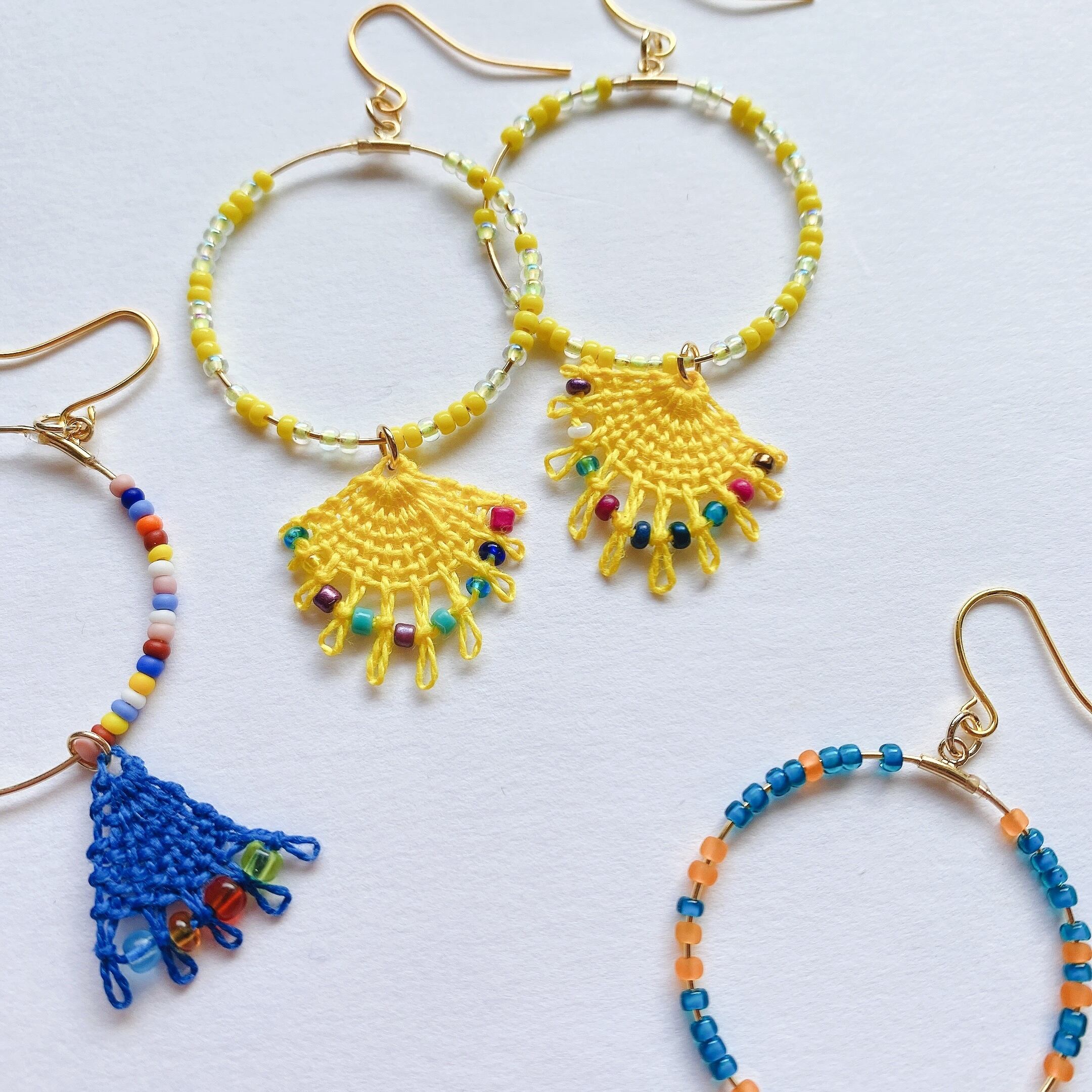 *フープ部分はビーズを通したあとレジンで輪を止めています。