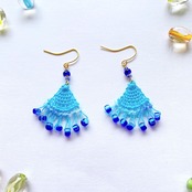 [材料]  青色DMC糸・変わり糸・ストライプガラスビーズ・小さなガラスビーズ・ピアス金具