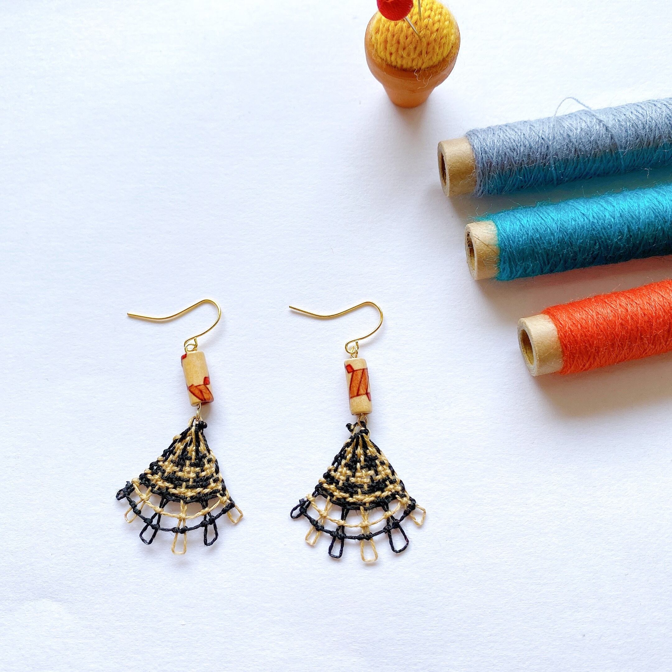 [材料]  DMC糸・ 木でできたビーズ・ピアス金具