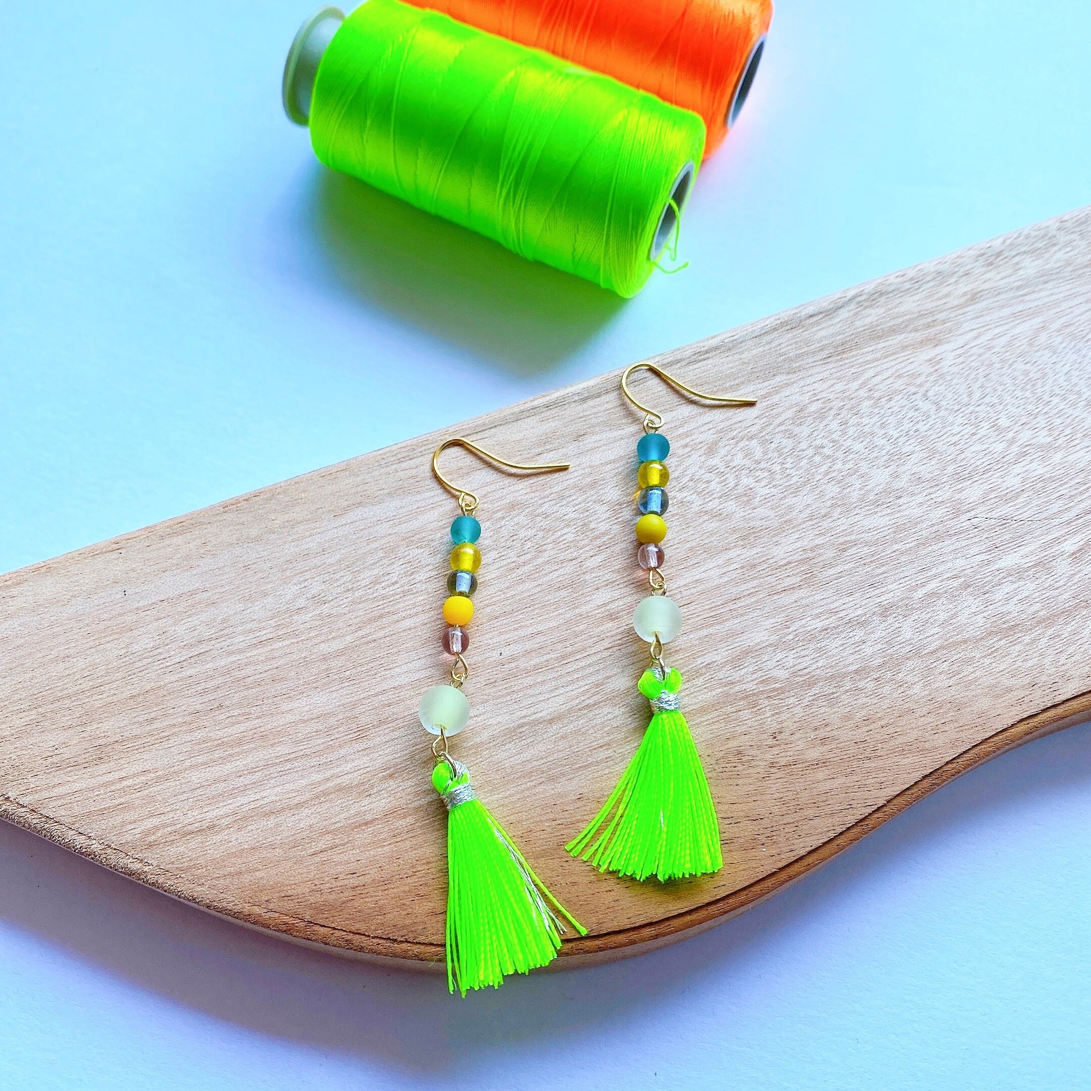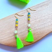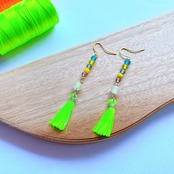 メロンサイダー色ネオンカラーのタッセルとインドビーズを合わせました。