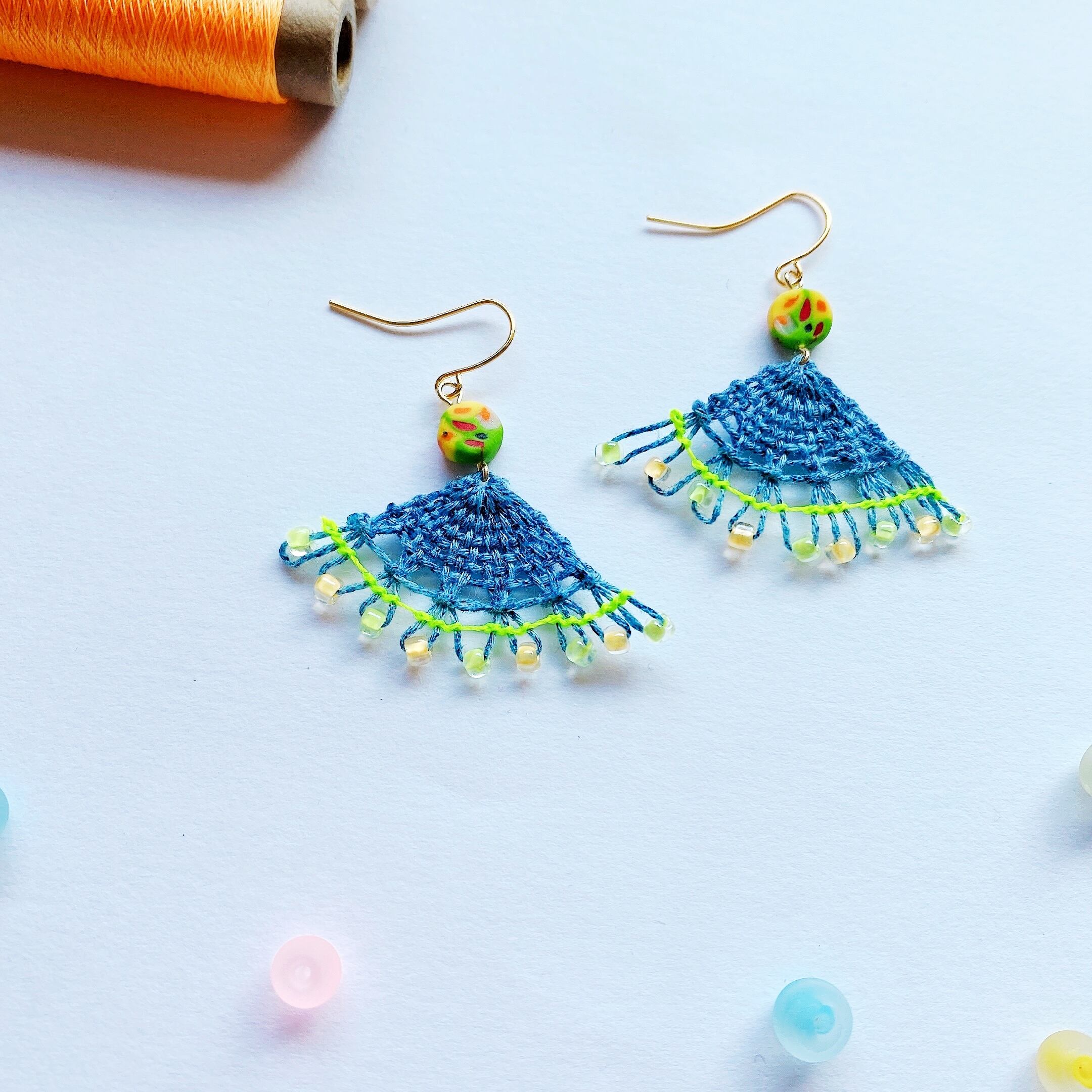 雨の日も楽しいネオンアクセントニャンドゥティのピアス