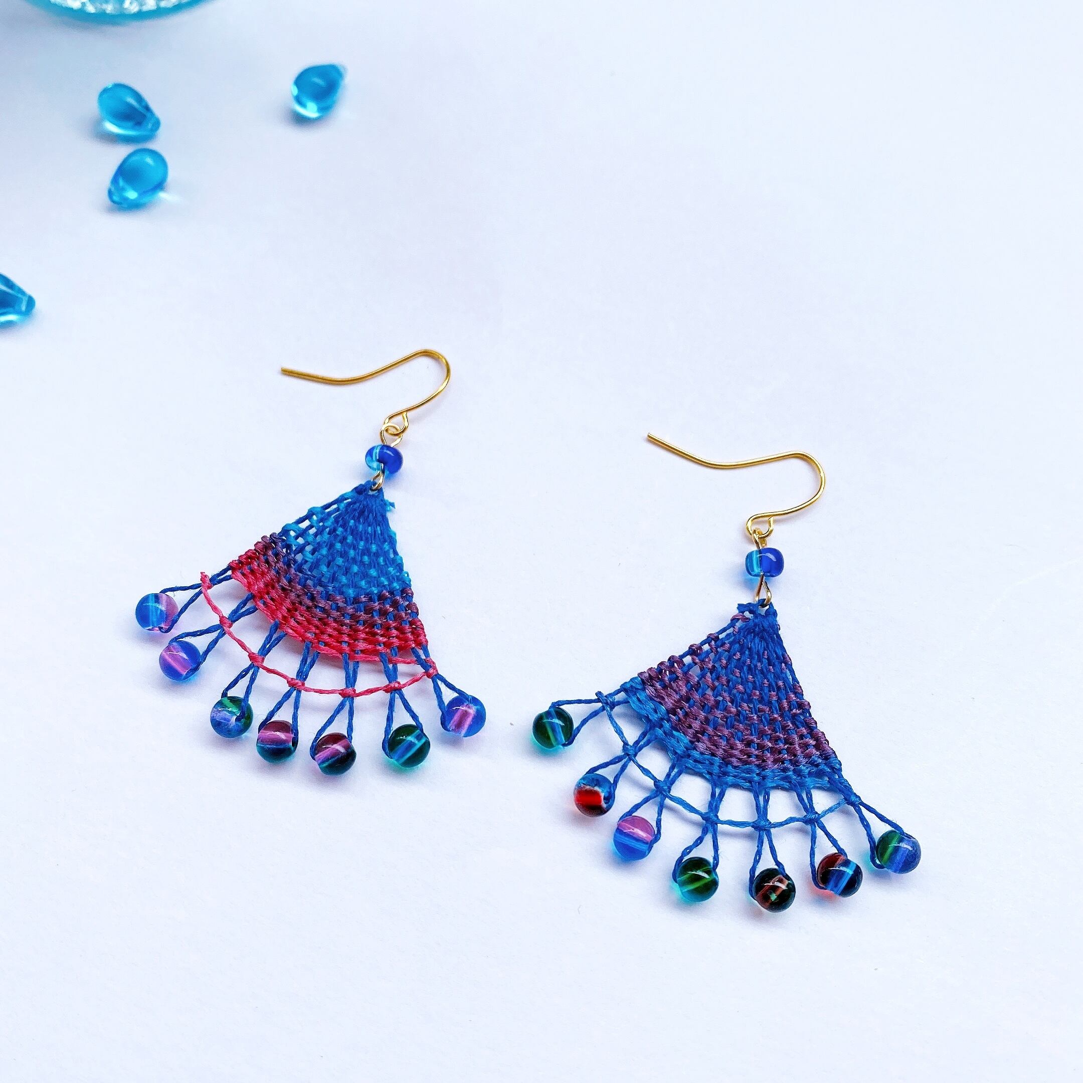 広がる夕暮れの海色ニャンドゥティのピアス