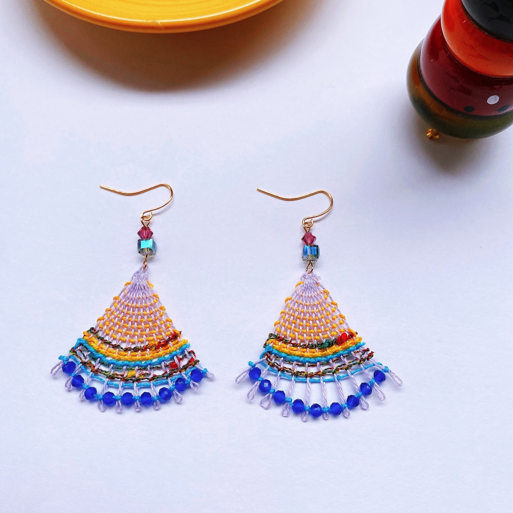 広がるアフリカンスカートの糸ピアス(ブルー系)