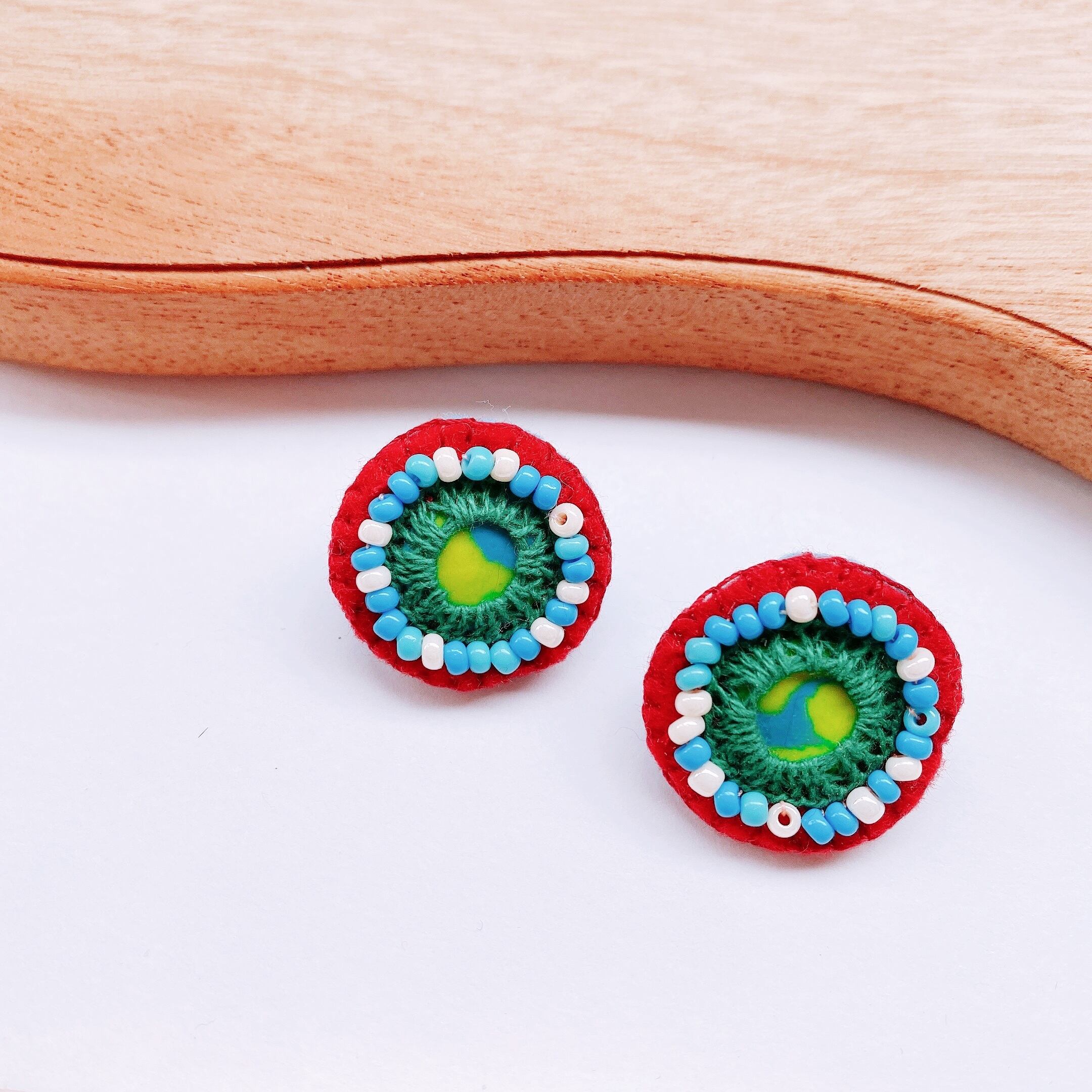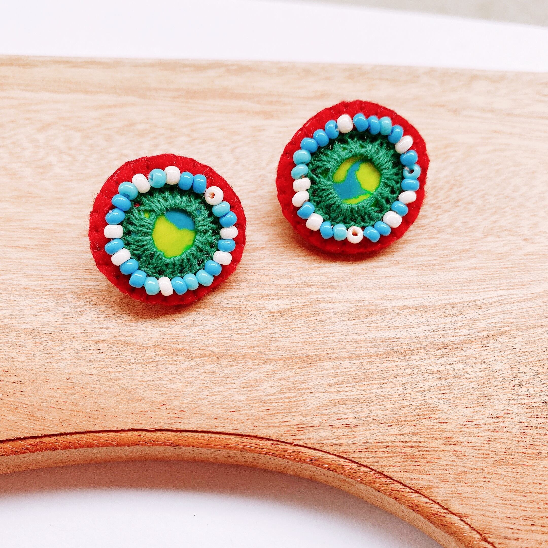 [材料] グリーン刺繍糸・丸小ビーズ・樹脂チップ・2mm厚手フェルト・ピアス金具